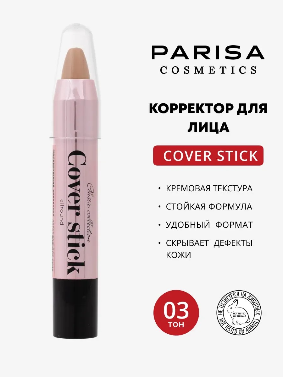 Корректор для лица Cover Stick – Ваш идеальный помощник для безупречного макияжа! Придайте своему лицу идеальный вид с корректором Cover Stick от Parisa Cosmetics. Этот высококачественный консилер для лица сочетает в себе все необходимые свойства, чтобы скрыть недостатки, подчеркнуть вашу природную красоту и обеспечить уход за вашей кожей. Почему стоит выбрать Cover Stick? Эффективный корректор: Наша формула 3 в 1 предлагает мгновенное решение для маскировки прыщиков, темных кругов под глазами и других несовершенств. Консилер для лица легко распределяется и не оставляет видимых следов. Нежная текстура: Мягкая бархатная текстура продукта обеспечивает комфортное нанесение и идеально сливается с кожей. Он не сушит и не стягивает, а благодаря ланолину и витамину Е ухаживает за кожей, смягчая и питая её. Натуральный уход: Витамин Е также действует как натуральный УФ-фильтр, защищая вашу кожу от неблагоприятных внешних факторов. А соединения глицерина увлажняют, даря ощущение свежести и комфорта. Универсальность: Этот консилер для макияжа идеально подходит для повседневного использования, его легко носить с собой благодаря компактному формату. Забудьте о сложных процедурах – просто нанесите и освежите ваш образ за считанные минуты! Оттенки для любого типа кожи: В ассортименте представлены 5 разных оттенков, чтобы вы могли легко подобрать идеальный цвет, соответствующий вашему типу кожи. С помощью корректора для лица Cover Stick вы сможете добиться естественного и безупречного макияжа, не жертвуя уходом за кожей. Дайте своей коже то, что она заслуживает – прикройте несовершенства и подчеркните свою красоту с Cover Stick!