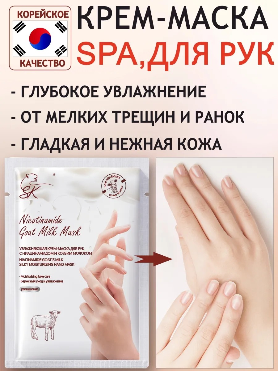 Уникальная увлажняющая маска для рук от SK — ваш незаменимый помощник в уходе за кожей рук! Наша косметика создана с использованием передовых технологий и природных компонентов, чтобы обеспечить вашим рукам максимальное увлажнение и питание. Маска на основе козьего молока и специальных уходовых компонентов, без парафина, поможет вам сделать вашу кожу рук более мягкой, гладкой и увлажненной. Уникальная формула маски способствует глубокому проникновению активных веществ в кожу, позволяя достичь максимального эффекта. Наша маска действует как парафиновая маска, образует на поверхности кожи пленку, которая сохраняет влагу и предотвращает ее испарение. Это особенно важно в сухих и холодных условиях, когда кожа нуждается в дополнительном увлажнении. Маска для рук SK также помогает смягчить огрубевшую кожу и устранить шероховатости. В результате регулярного использования маски, ваша кожа станет более упругой, эластичной и молодой. Наша маска представлена в удобном формате, который включает в себя специальные перчатки для терапии. Это позволяет вам сделать процедуру ухода за руками максимально комфортной и эффективной. Просто наденьте перчатки и дайте маске работать. Затем снимите перчатки и наслаждайтесь шелковистой кожей рук. Маска для рук SK — это профессиональный уход, который вы можете сделать прямо у себя дома. Наслаждайтесь результатами, которые обеспечивает природа и мануфактура SK. Попробуйте нашу маску уже сегодня и почувствуйте эффект, который она дает вашим рукам!