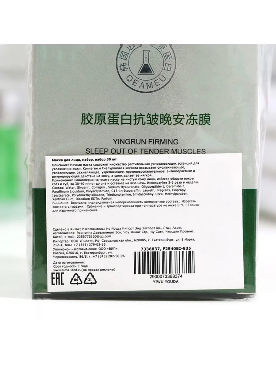 Объем упаковки: 4 г. В комплект входит 30 штук, что обеспечивает долгосрочный уход и возможность использования в течение месяца или более. Заботьтесь о своей коже с помощью этого эффективного набора для ночного ухода, который поможет сохранить молодость и красоту вашего лица.