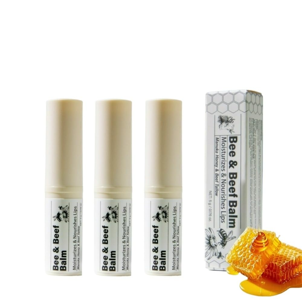 Moisturizing Tallow Lip Care Balm Grass-Fed Beef Tallow Lip Balm with Honey Shea Butter & Squalane Natural Lip Care for Dry Chapped Lips 3Pack