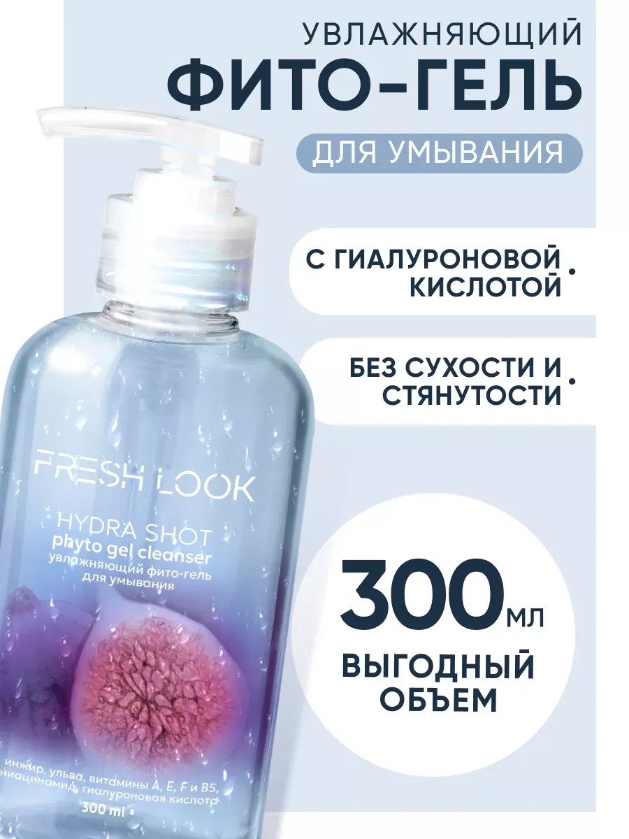 Гель умывашка от FRESH LOOK - уходовое средство, которое обеспечивает бережное и глубокое очищение комбинированной и самой чувствительной кожи. Очищающий гель для умывания и снятия остатков макияжа с лица и области вокруг глаз, содержащий гиалуроновую кислоту, обеспечивает увлажнение кожи. Гель образует легкую пену, которая эффективно очищает кожу от загрязнений и уменьшает видимость черных точек и пор. Умывалка для лица помогает увлажнить и разгладить кожу, делая ее мягкой и бархатистой, помогает от прыщей - борьба с несовершенствами против жирной кожи и черных точек на носу. Натуральные ингредиенты, такие как экстракт инжира и витамины Е, А, F, B5, способствуют восстановлению кожи и предотвращают преждевременное старение. Гель подходит для всех типов кожи, в особенности для сухой кожи, подойдет для подростков с проблемной кожей и акне, от воспалений и угрей. Продукт приятно освежает и оставляет ощущение комфорта после применения без стянутости и сухости, предотвращает образование морщин, эффект korean glass skin - сияния кожи лица. Очищающее средство для лица подходит для ежедневного ухода, снятие макияжа после гидрофильного масла и мицеллярной воды, во время и после душа, универсальный женский и мужской продукт, выравнивает тон кожи. Благодаря мягкой подарочной упаковке и большому объему флакона 300 мл и удобному дозатору геля-пенки хватит надолго - для применения достаточно одного нажатия. FRESH LOOK – это уходовая косметика для девушек и парней, которая содержит в себе витаминные коктейли овощей, ягод и фруктов, цветочков, молочных кислот, гликолевой кислоты, коллагеном, aha кислот. Она разработана на основе натуральных ингредиентов для достижения свежего внешнего вида и преумножения естественной красоты.