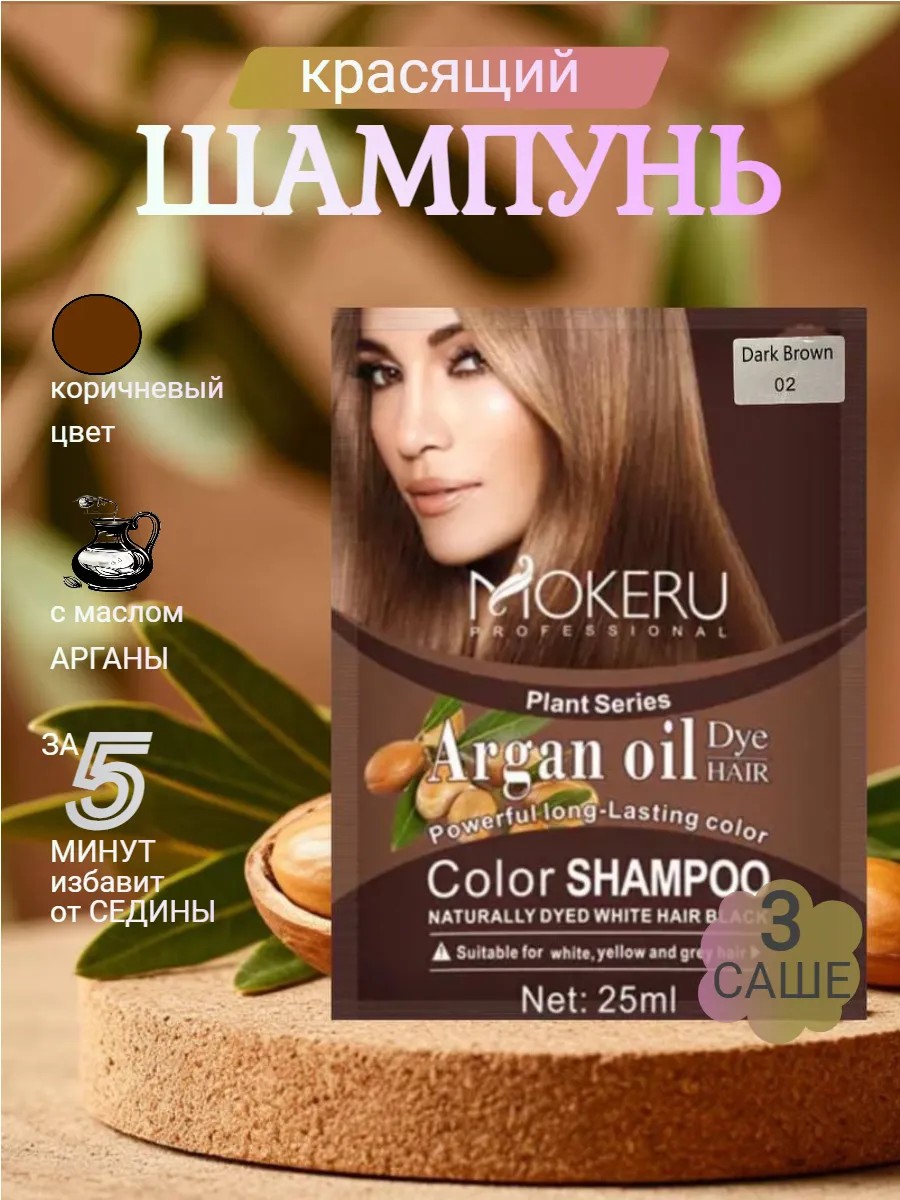 Шампунь красящий с арганой коричневый 3 саше *25мл