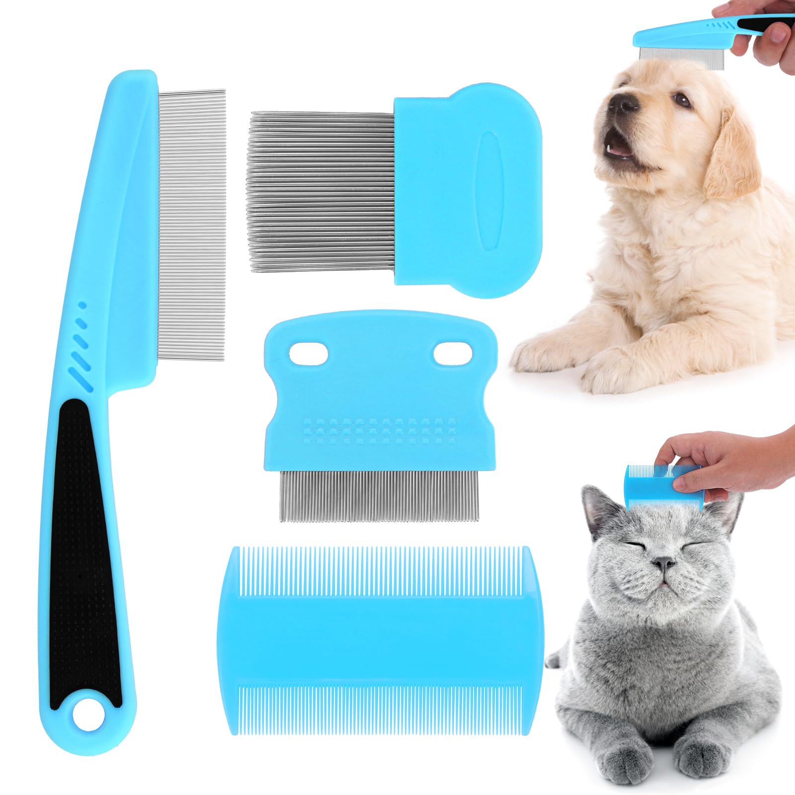 Specifications: Material: metal and plastic. Long handle comb: 14 cm 5.5 inches Long teeth comb: 8 x 5.7 cm 3 x 2.2 inches Schnapps tooth comb: 7 x 6.3 cm 2.7 x 2.4 inches Double -sided tooth comb: 8.8 x 5.1 cm 3.4 x 2 inches Packaging size: 15 x 10 x 1.4 cm. Package weight: 56 g. Scope of delivery: 1 x flea comb with a long handle. 1 x flea comb with long teeth. 1 x schnapps tooth flea comb. 1 x flea comb with double -sided teeth.WIDE Application4 PCs of different shape combs are multifunctional and practical.One sentence from our comb is enough for your pet.In addition, the dog cat care is suitable for many different fury animals.Together with all breeds of cats and dogs, the small brushes can also be used to comb out every knot of rabbit, guinea pigs, and ferrets.Durable materialThe dog cats made of stainless steel and robust plastic that can prevent, comb teeth of rust formation due to always wet after washing, stainless steel teeth are fixed to prevent from the comb.Package IncludeYou get a total of 4 different types of flea combs, suitable for different types of pets such as dogs, cats, rabbits, etc. Most of the house pets.Package List: 1PCs stainless steel high strength teeth 14x3 cm, 1pcs double pages of teeth lice comb 8.6x5 cm, 1PCs long stainless steel teeth comb 7.9x5 cm, 1PCs short stainless steel teeth tearing stain remote comb 6.8 6.1 in.Tear spots remote CombsTear spots are a common appearance in every pet with fur or hair and are particularly noticeable in light-colored animals.These unsightly spots pass when crusting and mucus build up to their pet of the eyes.With the PET care comb on a regular basis hinders the structure of Gunk and keeps your furry friend looking for fabulous.Keep the hair cleanavoid the headache of holding your pet of hair cleanly by grasping and fastening any questions as soon as possible.The dog Cat care combs are great closing together too easily pull out a little extra from the depths into your pet of the coat.Simply run the comb through their pet fur and the annoying vermin are picked up to the bristles of the comb.Spezifikationen: Material: Metall und Kunststoff. Langer Griffkamm: 14 cm 5,5 Zoll Lange Zähne Kamm: 8 x 5,7 cm 3 x 2,2 Zoll Schnapszahnkamm: 7 x 6,3 cm 2,7 x 2,4 Zoll Doppelseitiger Zahnkamm: 8,8 x 5,1 cm 3,4 x 2 Zoll Verpackungsgröße: 15 x 10 x 1,4 cm. Paketgewicht: 56 g. Lieferumfang: 1 x Flohkamm mit langem Griff. 1 x Flohkamm mit langen Zähnen. 1 x Schnapszahn-Flohkamm. 1 x Flohkamm mit doppelseitigen Zähnen.Wide Application4 PCS verschiedenen form kämme sind multifunktions und praktische. Ein satz von unsere kamm ist genug für ihr haustier pflege. Zusätzlich, die hund katze pflege Kämme sind geeignet, auf viele verschiedene pelzigen tiere. Zusammen mit alle rassen von katzen und hunde, die kleine bürsten können auch verwendet werden, um kamm heraus jede knoten von kaninchen, guinea schweine, und frettchen. Durable MaterialThe hund katze kämme aus edelstahl und robuste kunststoff, die verhindern können, kamm zähne von rostbildung durch immer nass nach dem waschen, edelstahl zähne sind fest eingebettet in die kunststoff griff zu verhindern drop out von der kamm. Package IncludeSie erhalten insgesamt 4 verschiedene arten von floh kämme, geeignet für verschiedene arten von haustiere, wie hunde, katzen, kaninchen, etc die meisten der haus haustiere. Paket Liste: 1Pcs edelstahl hohe festigkeit zähne kamm 14x3 cm, 1Pcs doppel seiten zähne läuse kamm 8,6x5 cm, 1Pcs lange edelstahl zähne kamm 7,9x5 cm, 1Pcs kurz edelstahl zähne reißen fleck entferner kamm 6,8 6,1 in. Tear Flecken Entferner CombsTear flecken sind eine gemeinsame auftreten in jedem haustier mit fell oder haar und sind besonders spürbare in leichter-farbige tiere. Diese unschöne flecken passieren wenn kruste und schleim bauen bis um ihr haustier der augen. Mit die pet pflege kamm auf einer regelmäßigen basis behindert die aufbau von gunk und hält ihre pelzigen freund suchen fabulous. Keep Die Haar CleanAvoid die kopfschmerzen von halten ihr haustier der haar sauber durch erfassen und befestigung jede möglich fragen so bald wie möglich. Die hund katze pflege kämme sind super schließen zusammen zu leicht herausziehen etwas extra aus der tiefe in ihr haustier der mantel. Einfach laufen die kamm durch ihr haustier fell und die lästigen ungeziefer abgeholt werden bis in die borsten der kamm.Molain Katze Hund Flohkamm, 4 Pieces Pet Reißen Fleck Entferner Kamm Set Pet Hund Katze Pflege Kamm (hellblau)