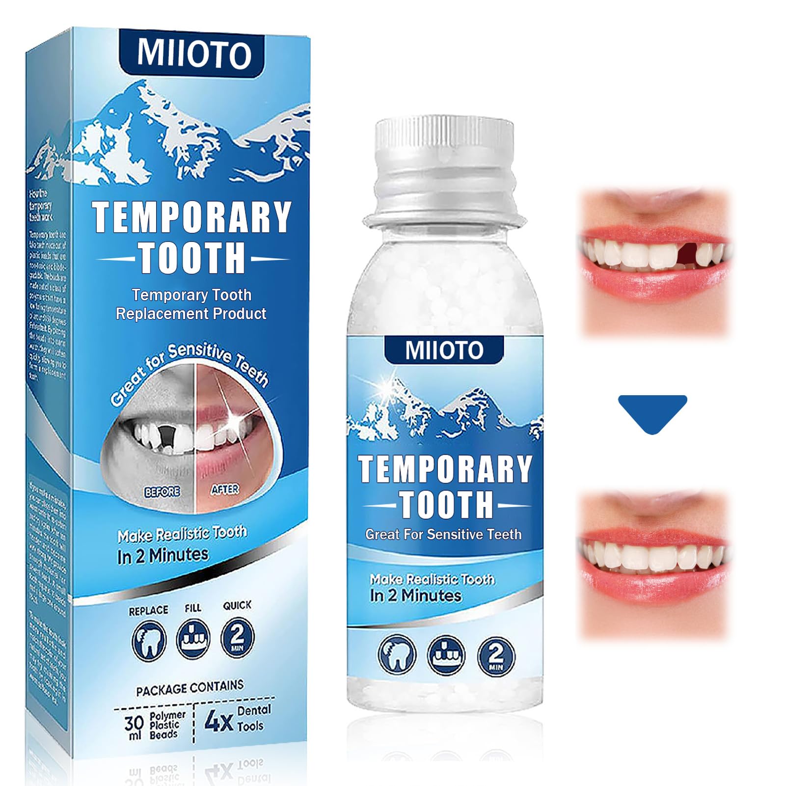 Special feature: 1. Form and size matching your front and back teeth. 2. Reliable and safe material. 3. The process is simple, can be completed in a few minutes, is firm and does not fall off easily. 4. Form teeth with exactly the right temperature. 5. It can be used to repair teeth, broken teeth, missing teeth, Halloween tooth replacement, etc. Package includes: 1x 30ml tooth filling granulate 1 set of relief tools How do you use: 1. Select the material according to the size of the missing tooth and put it in boiling water. 2. Stir the material a few times with a spoon to achieve an even mixture.After mixing it can be shaped like plasticine. 3. After about a minute, the white particles become translucent and the teeth can be re -shaped. 4. The material hardens after cooling at room temperature.It can be worn via missing teeth and rinsed with cold water to accelerate the cooling. Observe: 1. Only for temporary use, please do not wear for a long time. 2. Do not drink hot drinks during use and don't eat hard dishes. 3. Pay attention to oral hygiene after use.DREE application spectrumtooth repair granules are suitable for tooth veins from various teeth that can be used to repair tooth defects, large gaps and uneven teeth, and can also be used as accessories when participating in cosplay, various parties and halloween.Easy to useThis easy to use temporary dentures.Simply put the thermalopers in boiling water for a few minutes, adjust shape and size to your needs and carefully press the prosthesis on your real teeth or gums.And wait.Let it dry for about 3-5 minutes.Real teethFormable artificial teeth can be made in most forms to meet your different requirements for the tooth restoration.Although it is a provisional prosthesis, you can also use it to chew food (hard, sticky foods are not recommended).Gentle materialThe wrong teeth are made of high quality soft material, are soft and smooth, safe and odorless in the application.The color resembles natural teeth and can help you cover missing teeth.Temporary tooth repair setThe provisional dentures are used for filling and repairing missing and broken teeth and can be used temporarily effectively in everyday life.Note: After inserting the denture, please do not drink hot water so as not to melt your teeth in the mouth and to impair use.Besonderheit: 1. Form und größe passend zu ihren vorder- und hinterzähnen. 2. Zuverlässiges und sicheres material. 3. Der vorgang ist einfach, kann in wenigen minuten abgeschlossen werden, ist fest und fällt nicht leicht ab. 4. Formen sie zähne ganz einfach mit genau der richtigen temperatur. 5. Es kann zur reparatur von zähnen, abgebrochenen zähnen, fehlenden zähnen, halloween-zahnersatz usw. Verwendet werden. Paket beinhaltet: 1x 30ml zahnfüllungsgranulat 1 satz hilfswerkzeuge Wie benutzt man: 1. Wählen sie das material entsprechend der größe des fehlenden zahns aus und legen sie es in kochendes wasser. 2. Rühren sie das material einige male mit einem löffel um, um eine gleichmäßige mischung zu erreichen. Nach dem mischen kann es wie plastilin geformt werden. 3. Nach etwa einer minute werden die weißen partikel durchscheinend und die zähne können neu geformt werden. 4. Das material härtet nach dem abkühlen bei raumtemperatur aus. Es kann über fehlenden zähnen getragen und mit kaltem wasser abgespült werden, um das abkühlen zu beschleunigen. Beachten: 1. Nur für den vorübergehenden gebrauch, bitte nicht für längere zeit tragen. 2. Trinken sie während des gebrauchs keine heißen getränke und essen sie keine harten speisen. 3. Achten sie nach der anwendung auf die mundhygiene.Breites anwendungsspektrumZahnreparatur granulat eignen sich für zahnveneers verschiedener zähne, die zur reparatur von zahndefekten, großen lücken und unebenen zähnen verwendet werden können, und können auch als zubehör bei der teilnahme an cosplay, verschiedenen partys und halloween verwendet werden . Einfach zu verwendenDiese einfach zu bedienen temporäre zahnersatz. Geben sie die thermoperlen einfach für ein paar minuten in kochendes wasser, Passen sie form und größe an ihre bedürfnisse an und drücken sie die prothese vorsichtig auf ihre echten zähne oder ihr zahnfleisch. Und warten. Lassen sie es etwa 3-5 minuten trocknen. Echte zähneFormbare künstliche zähne können in den meisten formen hergestellt werden, um ihren unterschiedlichen anforderungen an die zahnrestaurierung gerecht zu werden. Obwohl es sich um eine provisorische prothese handelt, können sie sie auch zum kauen von nahrungsmitteln verwenden (harte, klebrige nahrungsmittel werden nicht empfohlen). Sanftes materialDie falsche zähne bestehen aus hochwertigem weichem material, sind weich und glatt, sicher und geruchlos in der anwendung. Die farbe ähnelt natürlichen zähnen und kann ihnen helfen, fehlende zähne abzudecken. Temporäres ZahnreparatursetDie provisorischer zahnersatz werden zum füllen und reparieren fehlender und gebrochener zähne verwendet und können vorübergehend effektiv im täglichen leben eingesetzt werden. Hinweis: Trinken sie nach dem einsetzen des zahnersatzes bitte kein heißes wasser, um die zähne nicht im mund zu schmelzen und die verwendung zu beeinträchtigen.Moldable False Teeth, Temporäre Zahnreparatur Kit, Zahnreparatur-Set, Provisorischer Zahnersatz,Temporäre Zahnreparatur Perlen, zur Temporären Wiederherstellung Fehlender und Gebrochener Zähne