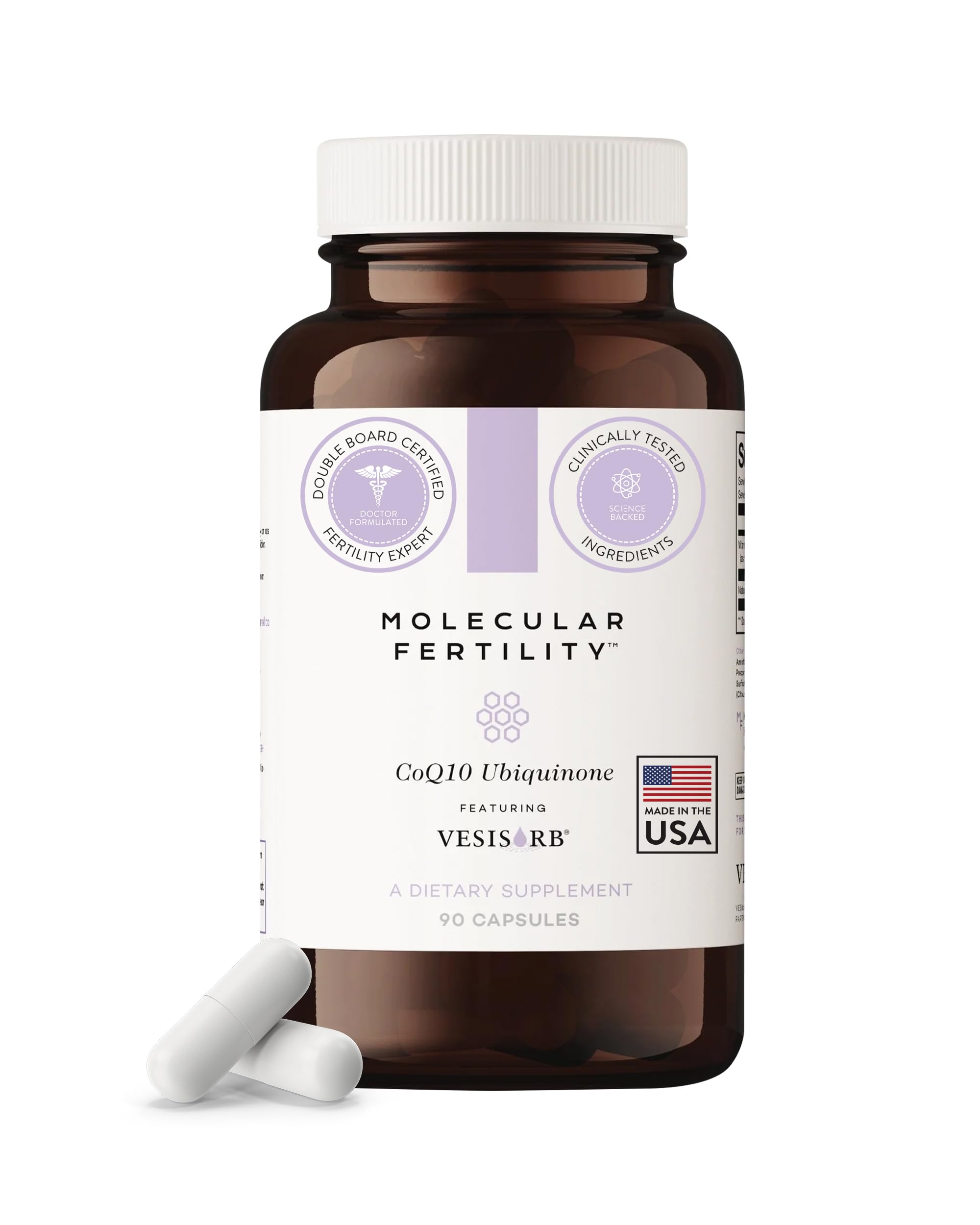 - : Tested by Eurofins, the globally trusted testing laboratory, for potency, purity, stability, quality. : Made in a GMP-Certifiied Facility. Free from soy, gluten, dairy, GMOs, artifical fillers. : Take 1-3 softgels daily for high absorption energy support, 2-3 months before conception to align with the body's natural maturation cycles. : Patented VESIsorb delivery system provides higher bioavailability for nutrient absorption, ensuring antioxidant power reaches reproductive cells. : Features 100mg of Kaneka, the bioactive CoQ10 form used directly by mitochondria to support fertility wellness in men women, especially those over 35. : Clinical grade formula developed by board-certified fertility expert Dr. Kiltz for mitochondrial function reproductive wellness.