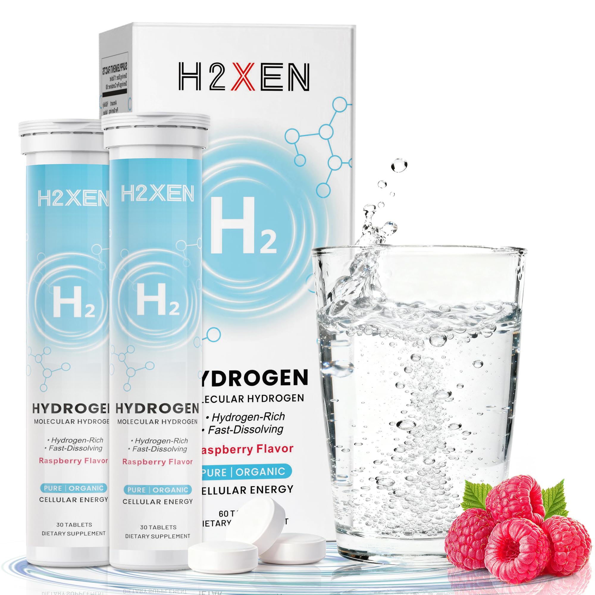 BRAIN BODY SUPPORT – DAILY PERFORMANCE - Formulated for everyday mental clarity and physical performance, these hydrogen tablets promote healthy aging, cellular repair, and brain support—ideal for workouts, long days, or recovery. BRAIN BODY SUPPORT – DAILY PERFORMANCE - Formulated for everyday mental clarity and physical performance, these hydrogen tablets promote healthy aging, cellular repair, and brain support—ideal for workouts, long days, or recovery. REFRESHING RASPBERRY FLAVOR – ZERO CALORIES - Enjoy a delicious dose of wellness with our naturally flavored hydrogen water tablets. Each tablet contains fruit-based extracts for a sugar-free, calorie-free hydration experience you'll actually want to drink. 8 PPM HYDROGEN – CLEAN HYDRATION POWER - These hydrogen tablets for drinking water generate up to 8 ppm of molecular hydrogen in just 480 mL of water. They help neutralize free radicals and support antioxidant defense, recovery, and oxidative balance for whole-body wellness. MOLECULAR HYDROGEN FOR CELLULAR ENERGY - H2XEN molecular hydrogen tablets are designed to support mitochondrial function, boost ATP production, and promote sustained natural energy—without caffeine. A clean, science-backed solution for daily vitality.