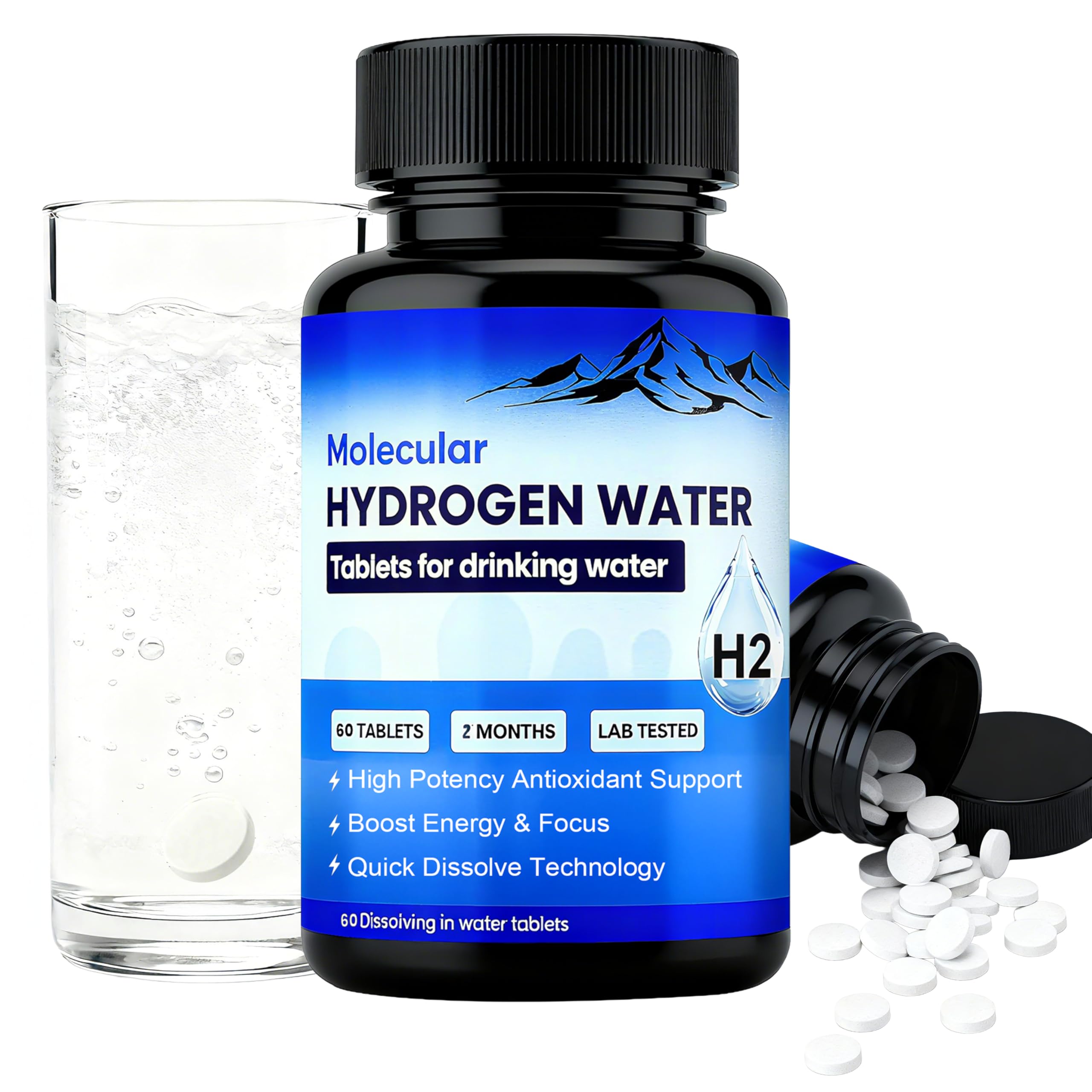 USAGE STORAGE REMINDERS – To preserve hydrogen water tablets effectiveness, keep the bottle tightly sealed after each use to avoid moisture exposure. For best clarity and full hydrogen activation, dissolve one hydrogen water tablets in warm water ( 40 C 104 F)—clear within 1 minutes. In room temperature water, allow up to 2 minutes, and in cold water, gently stir if needed. Do not swallow hydrogen water tablets directly. Note: A small amount of powder or sediment may occur in cold water—thi. TRAVEL-READY CLEAN FORMULA – Our bottle-sealed design locks in freshness and prevents premature reactions with moisture—delivering stable effervescence every time. Free from chlorine, ozone, and artificial additives, this is a cleaner, safer choice.for daily use at home, at the gym, or on the go—a true hydrogen water tablets upgrade from bulky bottles and weak dissolving brands. TRUSTED INGREDIENTS, TESTED PERFORMANCE – Made in GMP-certified facilities and third-party tested for hydrogen output and purity. Non-GMO, keto-friendly, vegan, and gluten-free—suitable for fasting, fitness, and everyday hydration enhancement.CLEAN FORMULA, NO FLAVOR OR FILLERS, Formulated with only elemental magnesium and food-grade acids. HIGH POTENCY HYDROGEN WATER TABLETS FOR ANTIOXIDANT DEFENSE – Our hydrogen tablets for drinking water dissolve rapidly to generate of molecular hydrogen—infusing your water with powerful antioxidants that help combat oxidative stress, support healthy aging, enhance recovery, and promote immune balance. FAST-DISSOLVING, EASY TO USE – Simply drop onehydrogen water tablets into 300–450 mL (10–15 oz) of water, let it dissolve for 1–2 minutes, and lightly stir if needed. Drink immediately to enjoy fresh hydrogen water. Use up to 2 times per day as part of your daily wellness routine. Do not swallow hydrogen water tablets directly.