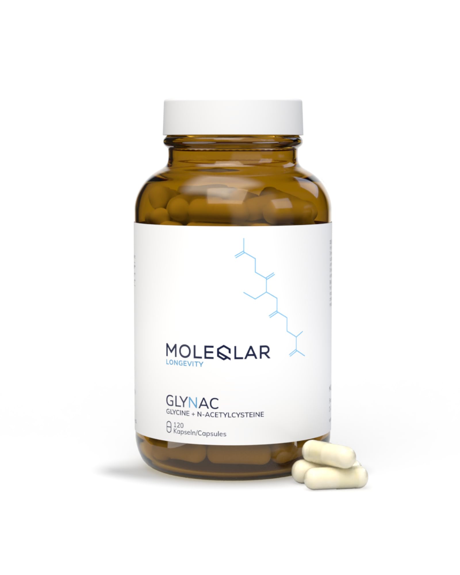 MoleQlar GlyNAC Lot de 120 gélules – 600 mg de glycine et 600 mg de NAC (N-acétylcystéine) par portion – Complexe précurseur de glutathion – Végétalien et sans gluten – Certifié en Allemagne