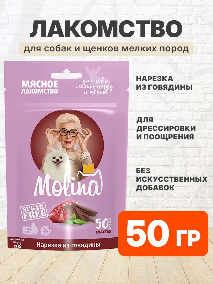 Molina Лакомство нарезка для мелких собак и щенков говядина 50 г