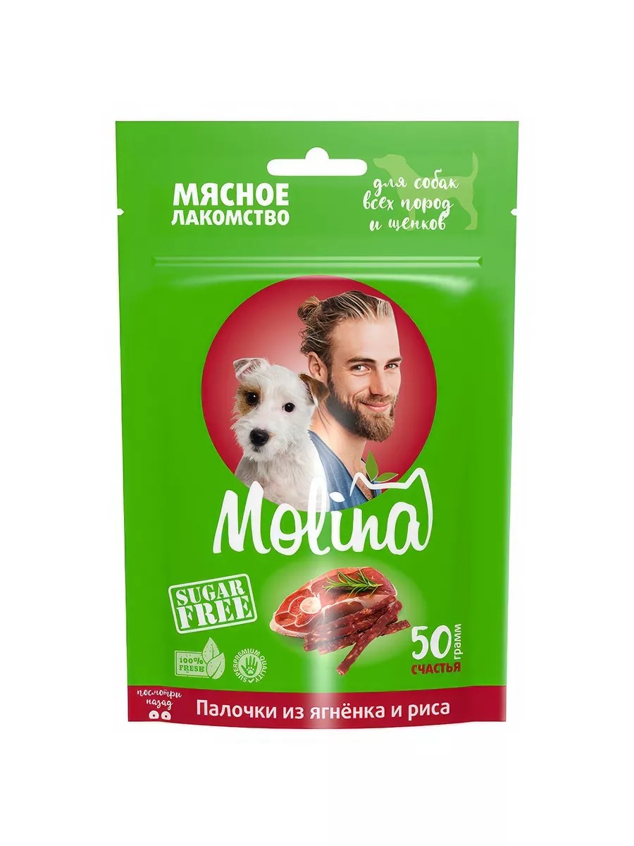 MOLINA Лакомство для собак и щенков Палочки из ягнёнка и риса, 50 г
