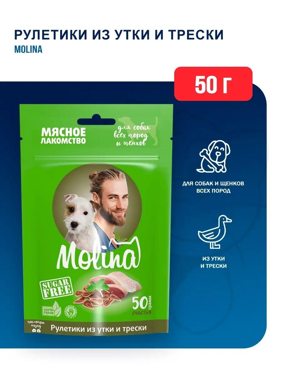 Molina лакомство для собак и щенков "Рулетики из утки и трески" 50г