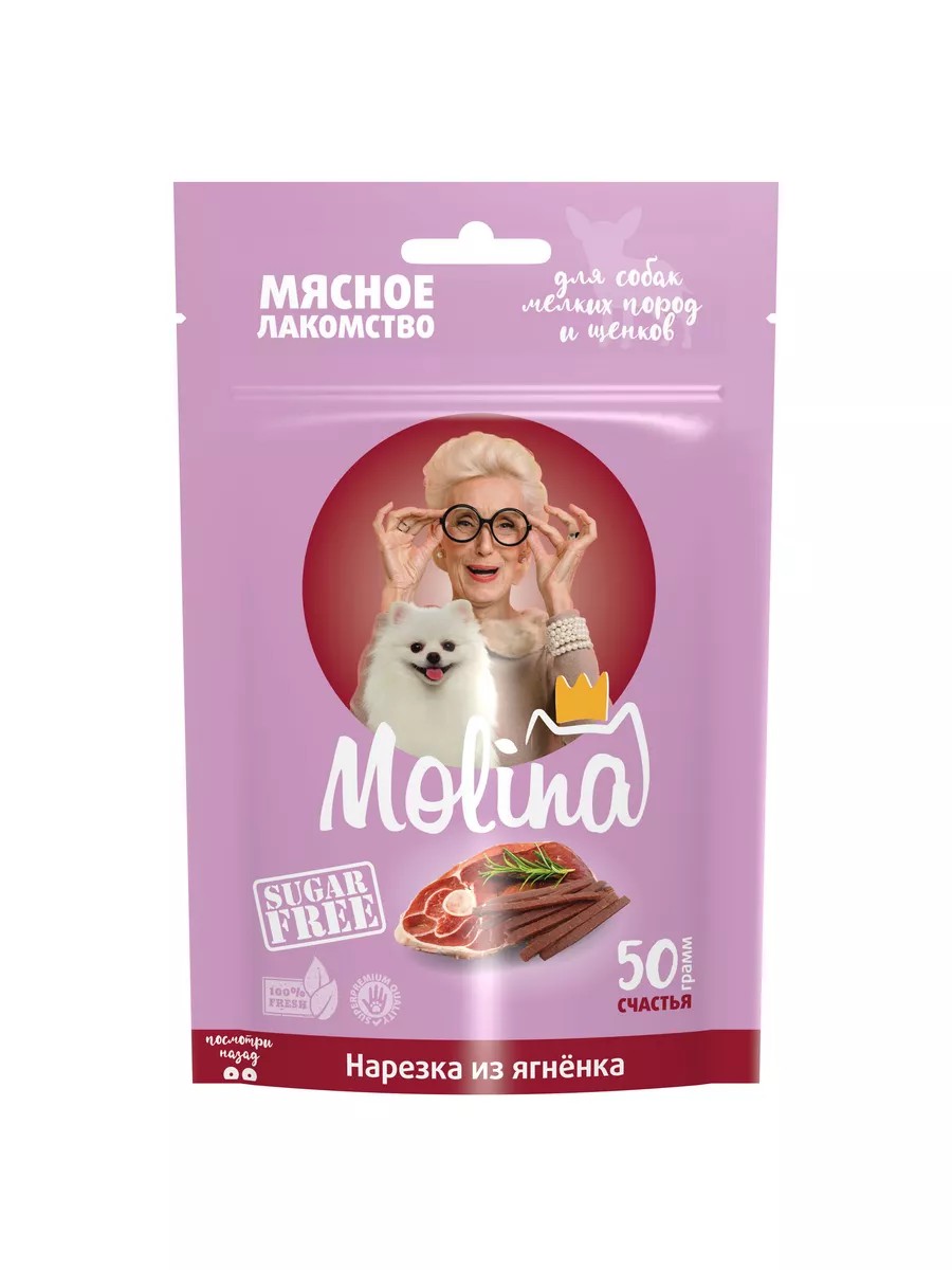 Молина Лакомство для собак мелких пород и щенков Нарезка из ягненка, 50г.