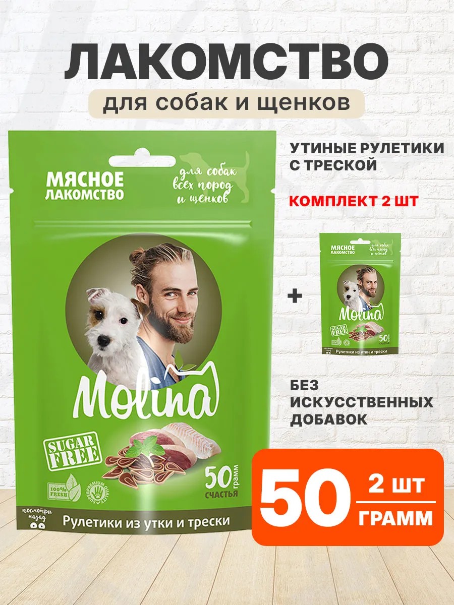 MOLINA Лакомство рулетики утиные для собак и щенков треска 50 г 2шт