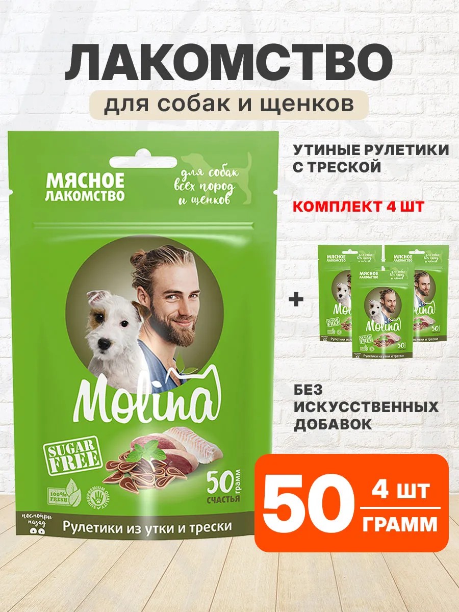 MOLINA Лакомство рулетики утиные для собак и щенков треска 50 г 4шт