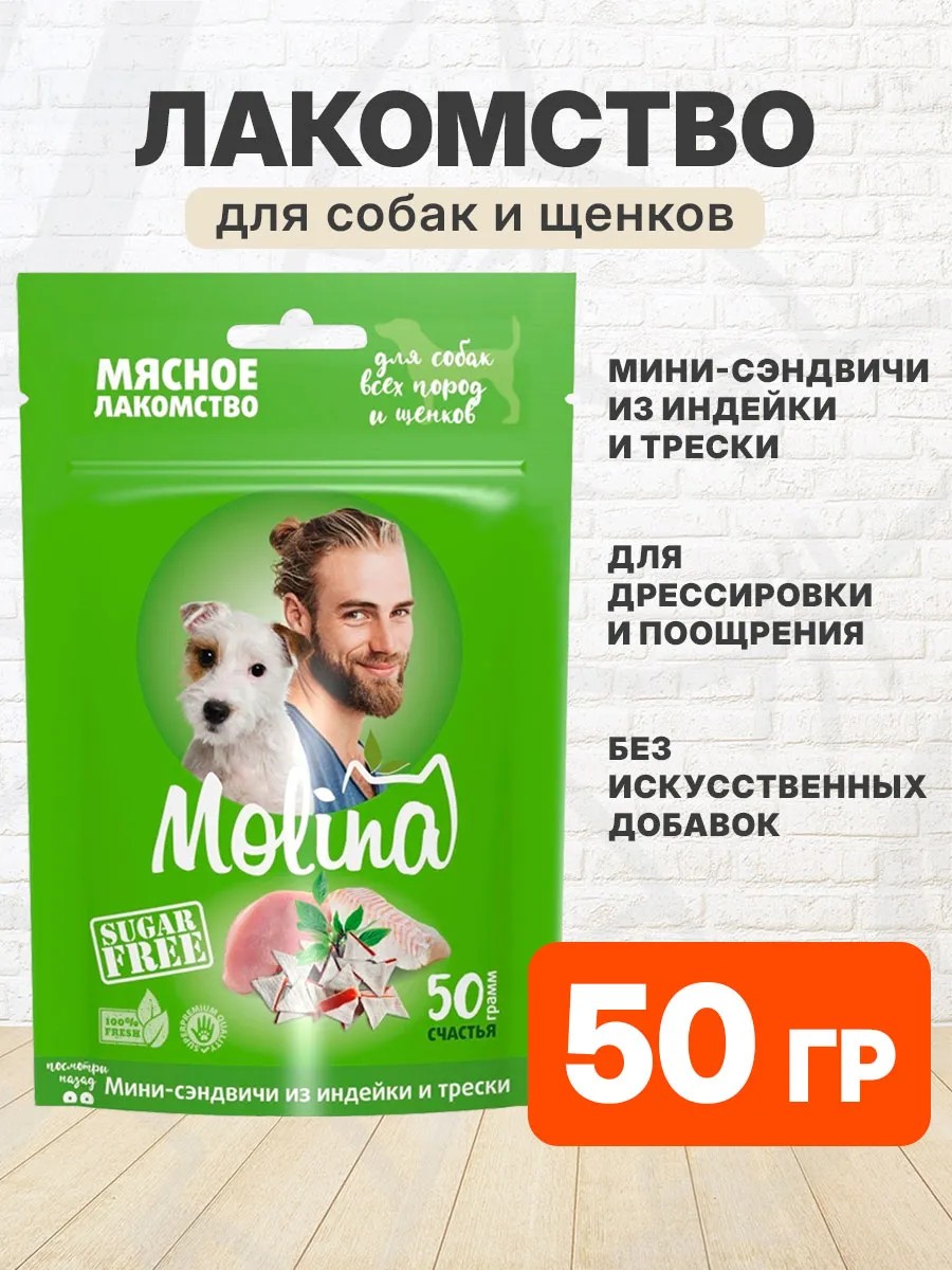 MOLINA Лакомство мини-сэндвичи для собак щенков индейка треска 50 г