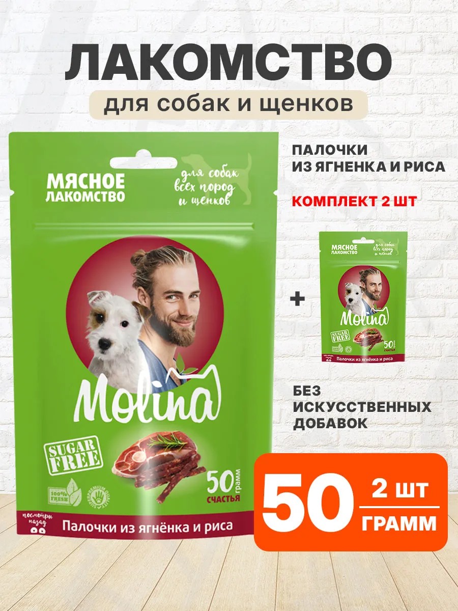 MOLINA Лакомство палочки для собак и щенков ягненок рис 50 г 2 шт