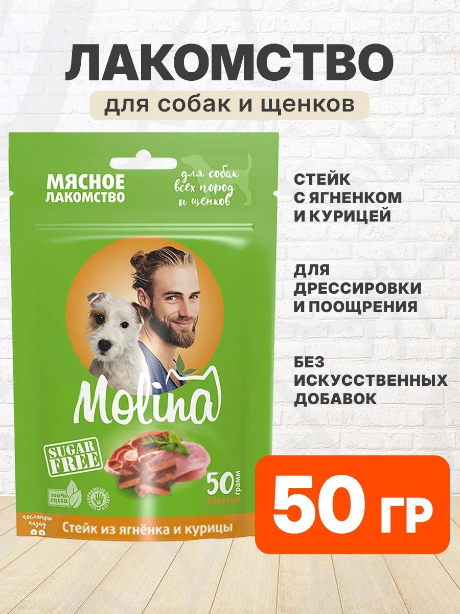 MOLINA Лакомство стейк для собак и щенков ягненок курица 50 г