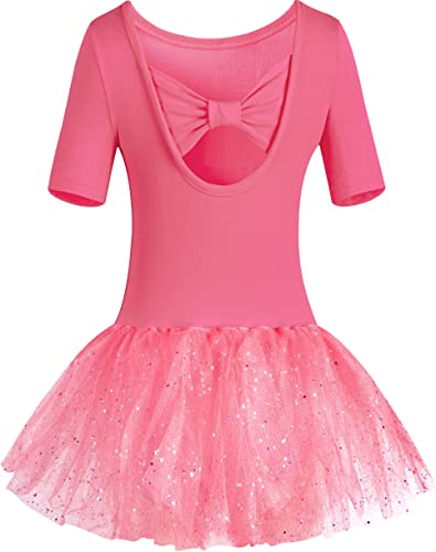MOLLDAN Girls Dance Leotards for Ballet Dress Shiny Skirt Ruffle Sleeve Crisscross Back Z-bow-burgundy 6-8 Years
