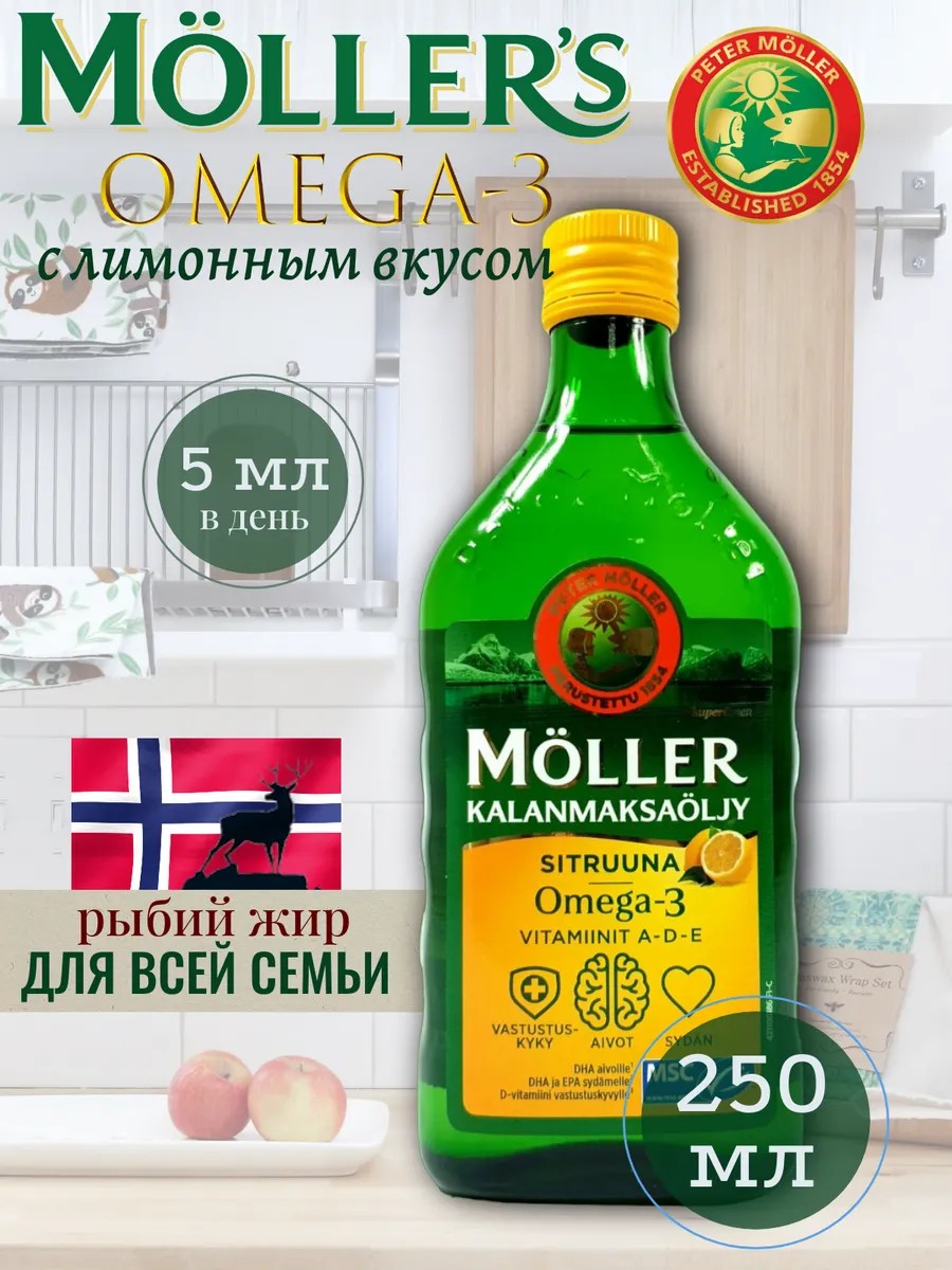 Moller Рыбий жир лимонный 250 мл Омега-3 Витамин А Д Е