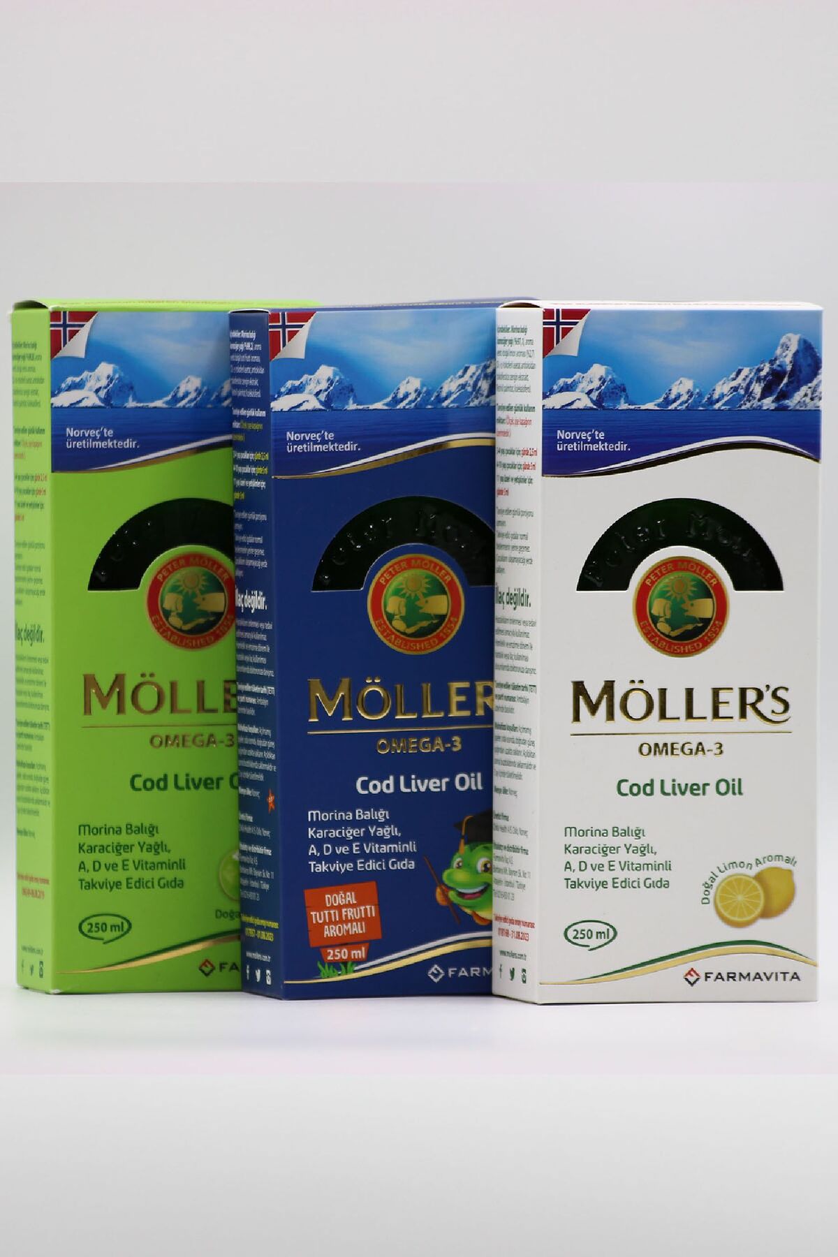 Möller's Omega-3 Morina Baligi Karaciger Yagi 250 ml (Dogal, Limon Aromali ve Tutti Frutti Aromali Seçenekleri)
