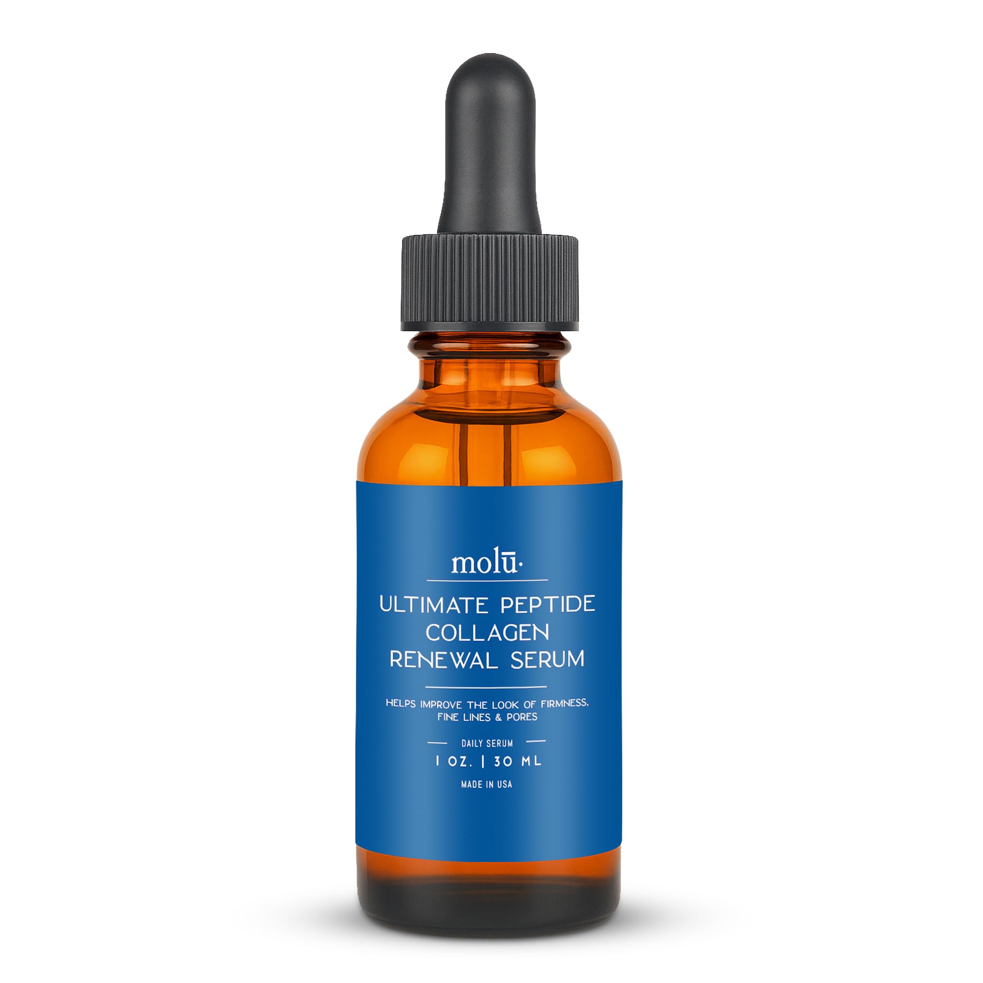Molu Ultimate Peptide Collagen Renewal Serum - Transform aging skin even tone and improve appearance of lines and pores - with Copper Peptides Niacinamide and Pterostilbene - 1 oz.