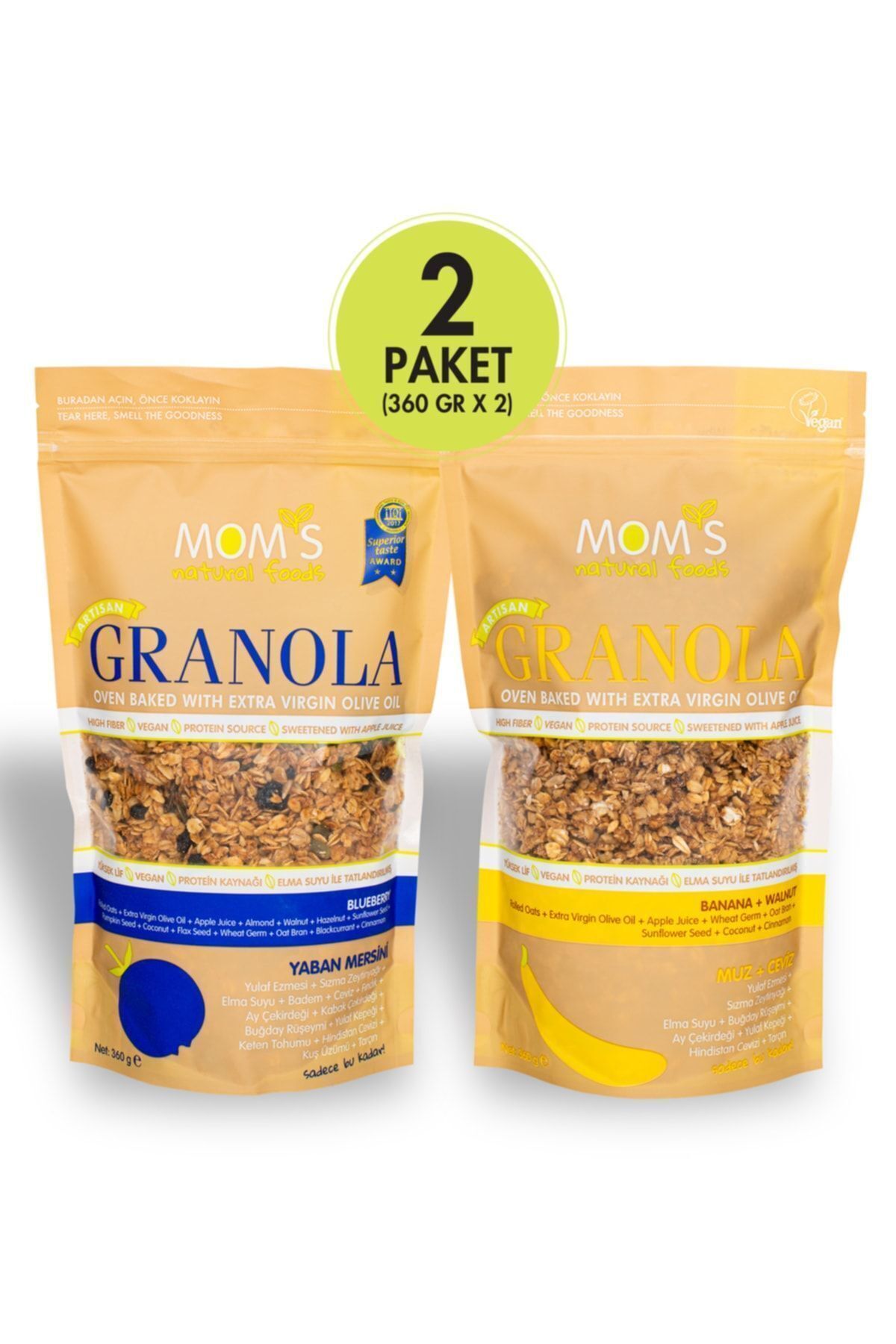 Mom's Natural Foods 2-PACK GRANOLA - BLUEBERRY 360 G - BANANA WALNUT 360 G