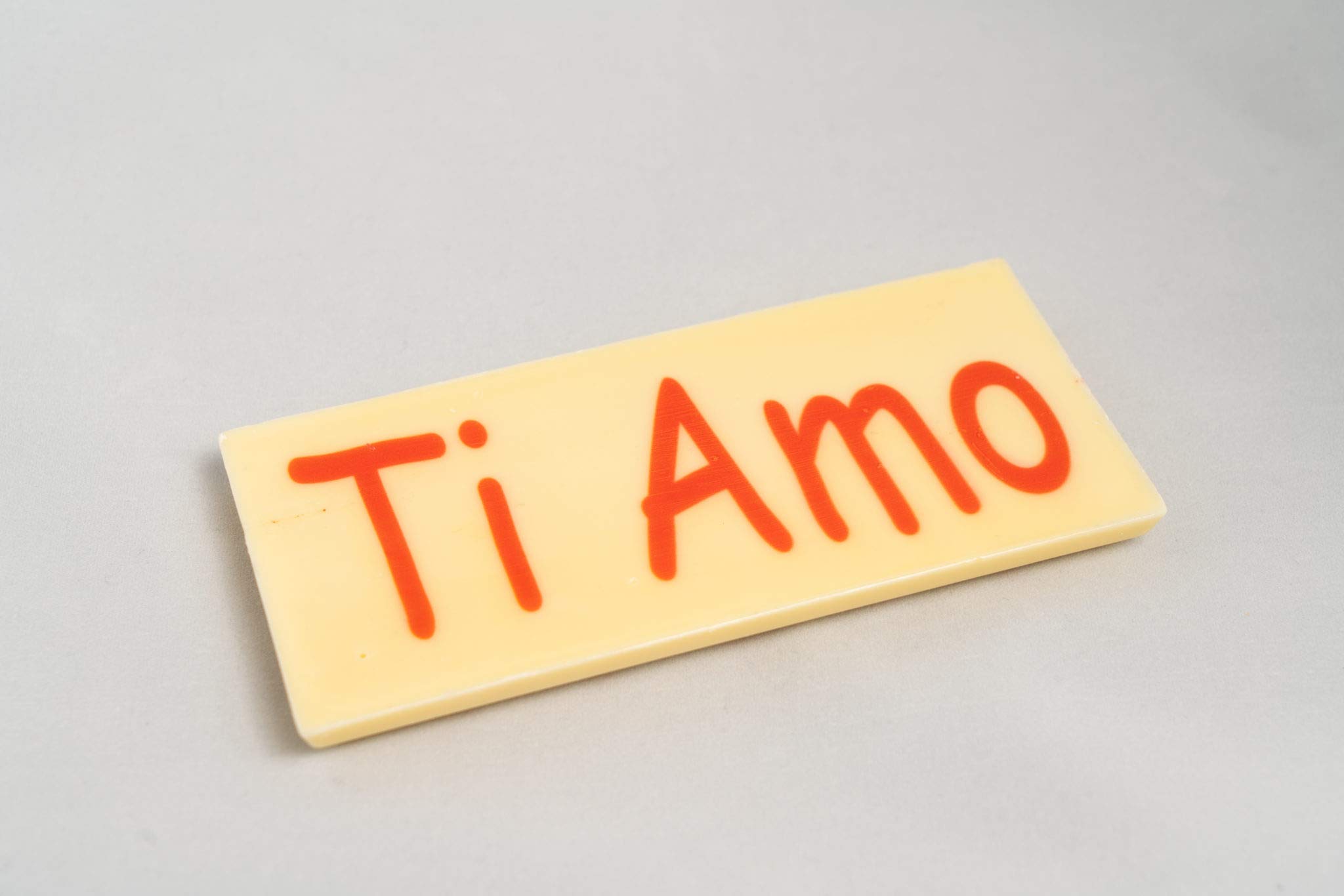 BARRETTE DE CHOCOLAT 60 g TAILLE PETITE TAILLE Je t'aime (par pièce)