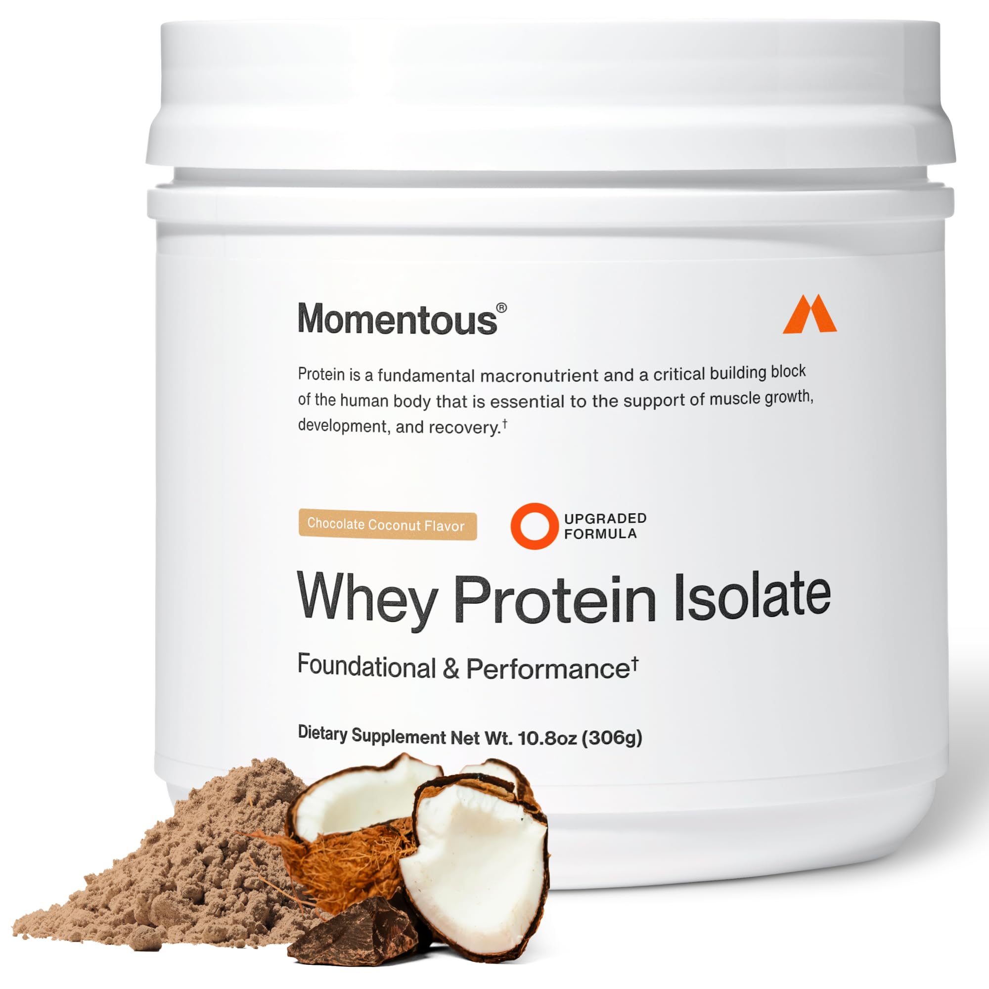Momentous Essential Grass-Fed Whey Protein Powder - 20 g Whey Isolate Protein - NSF Certified for Sport - Gluten-Free - 12 Servings for Essential Everyday Use - Chocolate Coconut - Package May Vary