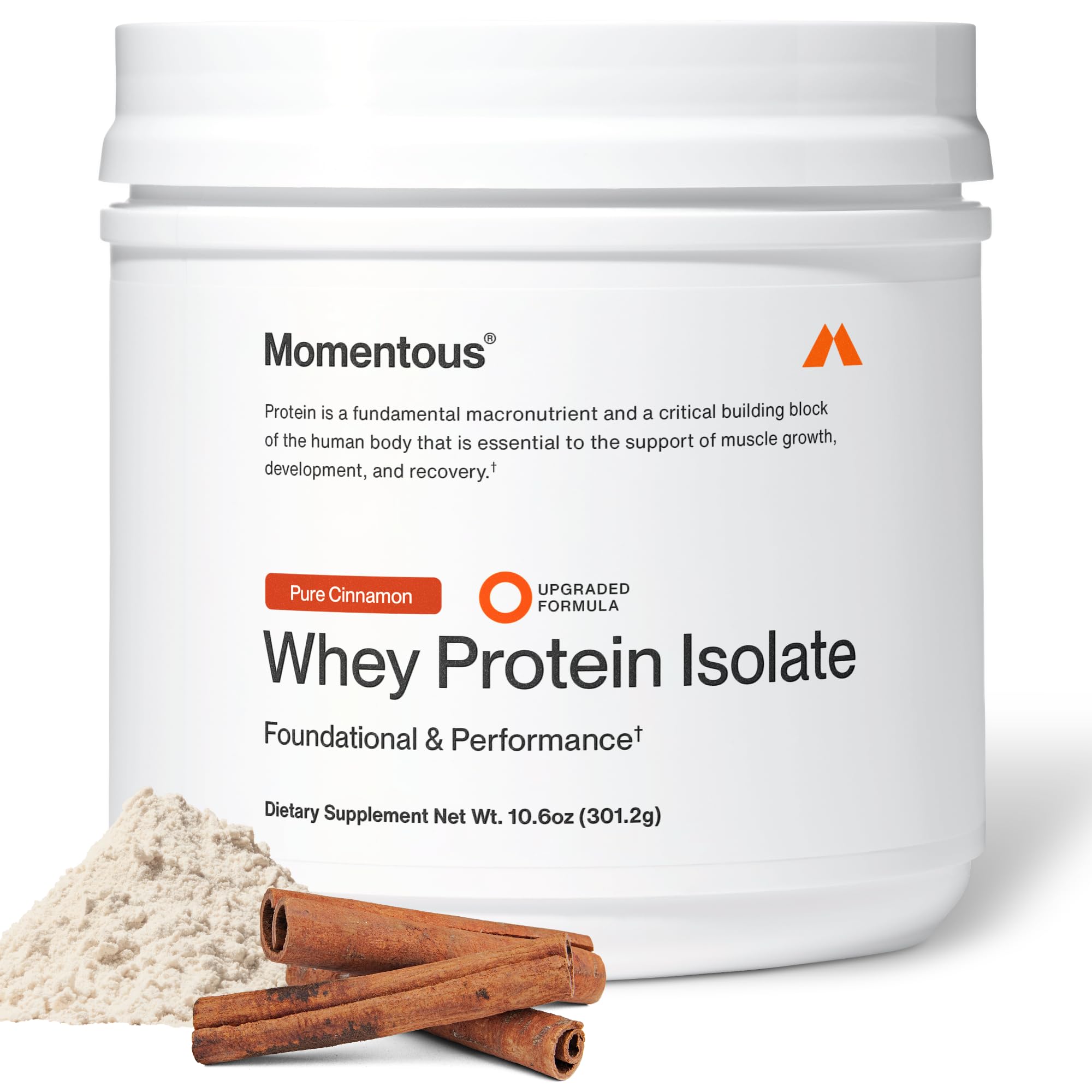 Momentous Essential Grass-Fed Whey Protein Powder - 20 g Whey Isolate Protein - NSF Certified for Sport - Gluten-Free - 12 Servings for Essential Everyday Use - Pure Cinnamon - Package May Vary