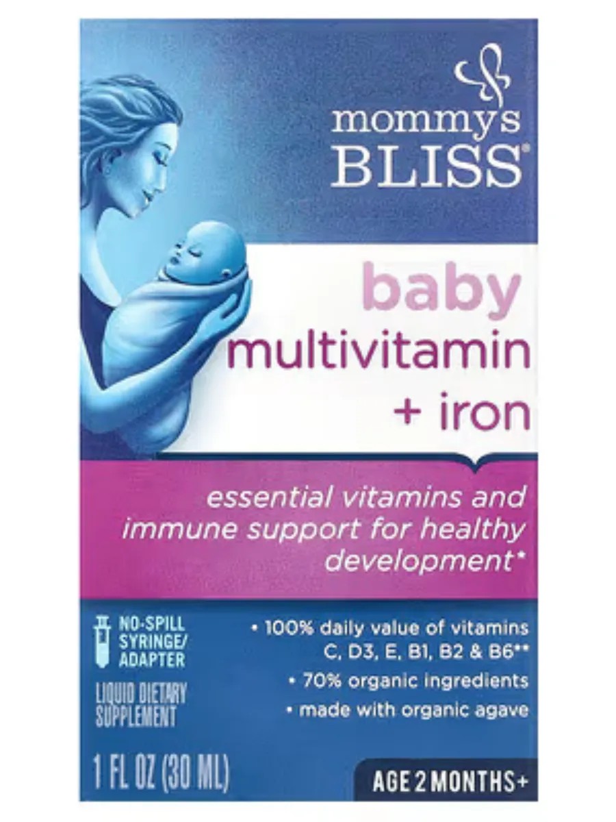 Мультивитаминная добавка с железом для детей от Mommys Bliss содержит важные витамины для здорового роста и формирования костей ребенка.