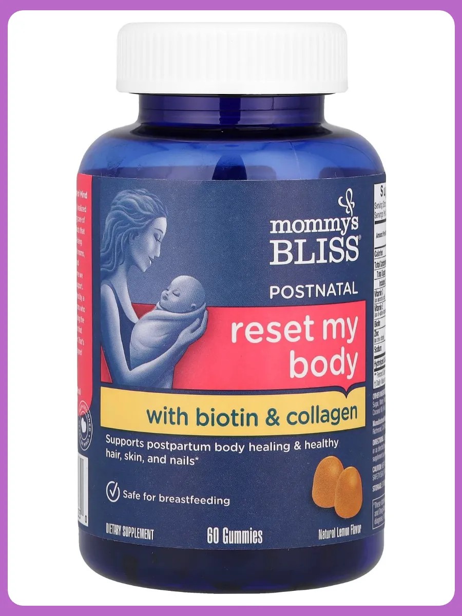 Mommy's Bliss, Postnatal Reset My Body- это натуральное средство восстановления после родов, которое бережно поддерживает организм молодой мамы. Уникальная формула обогащена витаминами, минералами, биотином и коллагеном — ключевыми элементами для здоровья ваших волос, кожи и ногтей. Содержит природные ингредиенты, включая экстракт натурального лимона, придающий свежесть вкусу и усиливающий полезные свойства продукта. Способствует восстановлению энергии и укреплению иммунитета после беременности и родов. Улучшает состояние кожи, волос и ногтей благодаря витаминам группы B, биотину и коллагену. Подходит даже кормящим мамам, обеспечивая комплексную поддержку здоровья естественным путем. Выберите Postnatal Reset My Body от Mommy’s Bliss, чтобы мягко поддержать свое тело и вернуть себе уверенность и красоту!