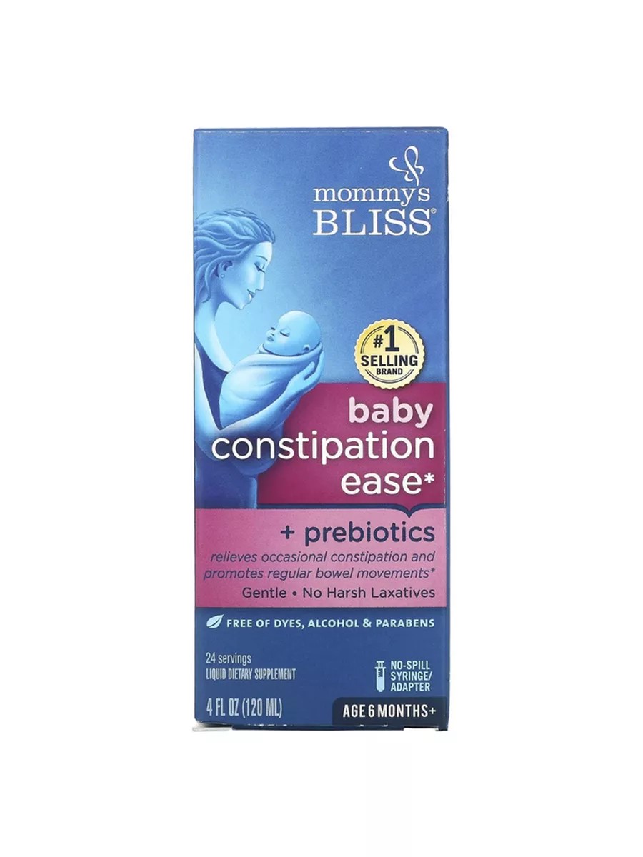 Mommys Bliss Baby Constipation Relief is a liquid herbal product designed to improve bowel movements and relieve occasional constipation.