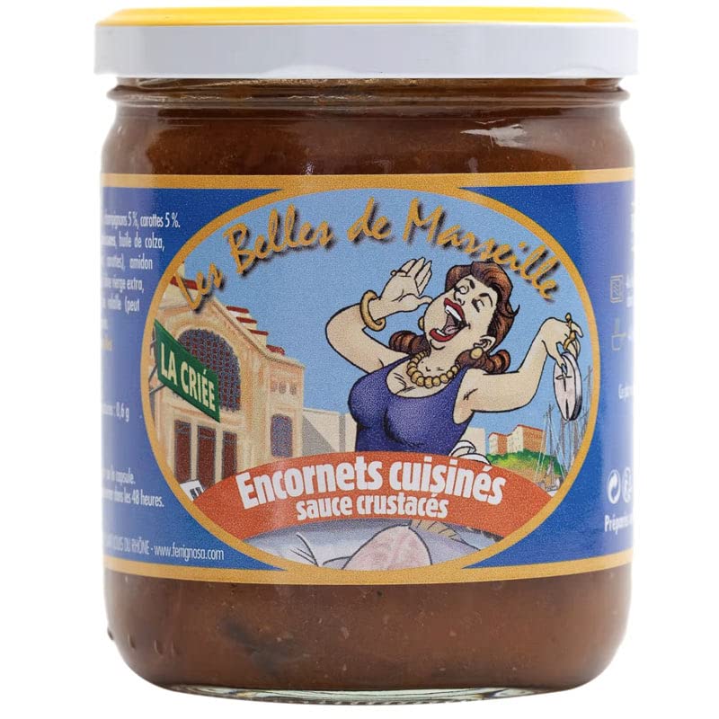 DESCRIPTION DU PRODUIT DESCRIPTION DU PRODUIT Une recette typiquement provençale! De délicieux morceaux d'encornets cuisinés dans une sauce crustacés. Cette recette est élaborée avec des encornets, des champignons et des carottes. Sa sauce aux crustacés est composée de crabes, de poissons, concentré de tomate, oignons, carottes, vin blanc, crème fraîche, huile d'olive, cognac, bouillon de volaille, différentes plantes aromatiques, épices. Un plat cuisiné généreux et riche en goût. Bocal 400g INGRÉDIENTS Garniture 45 : Encornets 35 , champignons 5 , carottes 5 . Sauce crustacés 55 : Crabes 15 , poissons, huile de colza, concentré de tomate, légumes (oignons, carottes), amidon modifié de maïs, vin blanc, beurre, huile d'olive vierge extra, sel, crème fraîche, cognac, bouillon de volaille (peut contenir du soja), plantes aromatiques, épices.