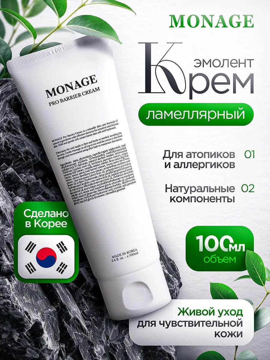 Увлажняющий крем для сухой и чувствительной кожи, эмолент для атопиков Monage Barrier Cream, 100мл, Корея