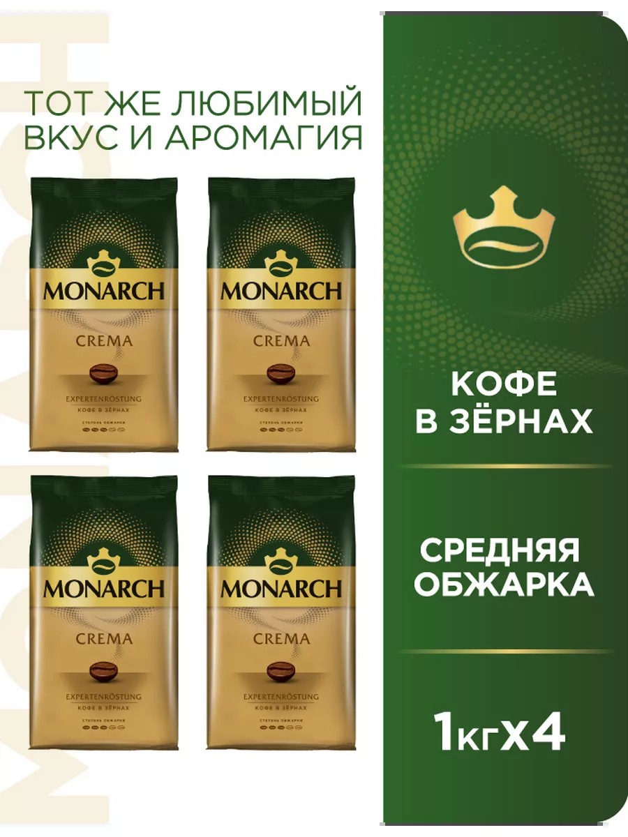 Monarch Набор кофе в зернах CREMA, 4 кг, 4 упаковки по 1 кг.