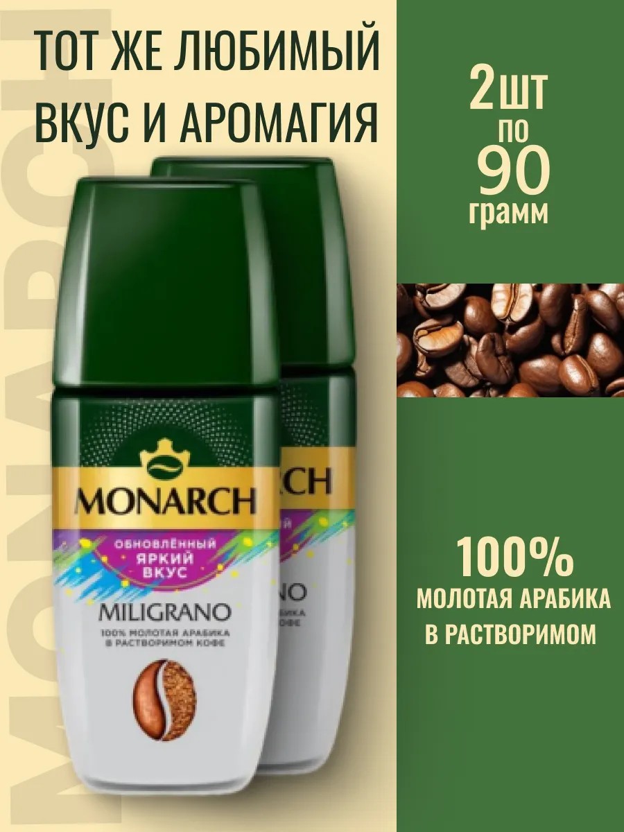 Monarch sg Кофе молотый в растворимом MILIGRANO, 2 шт по 90 грамм