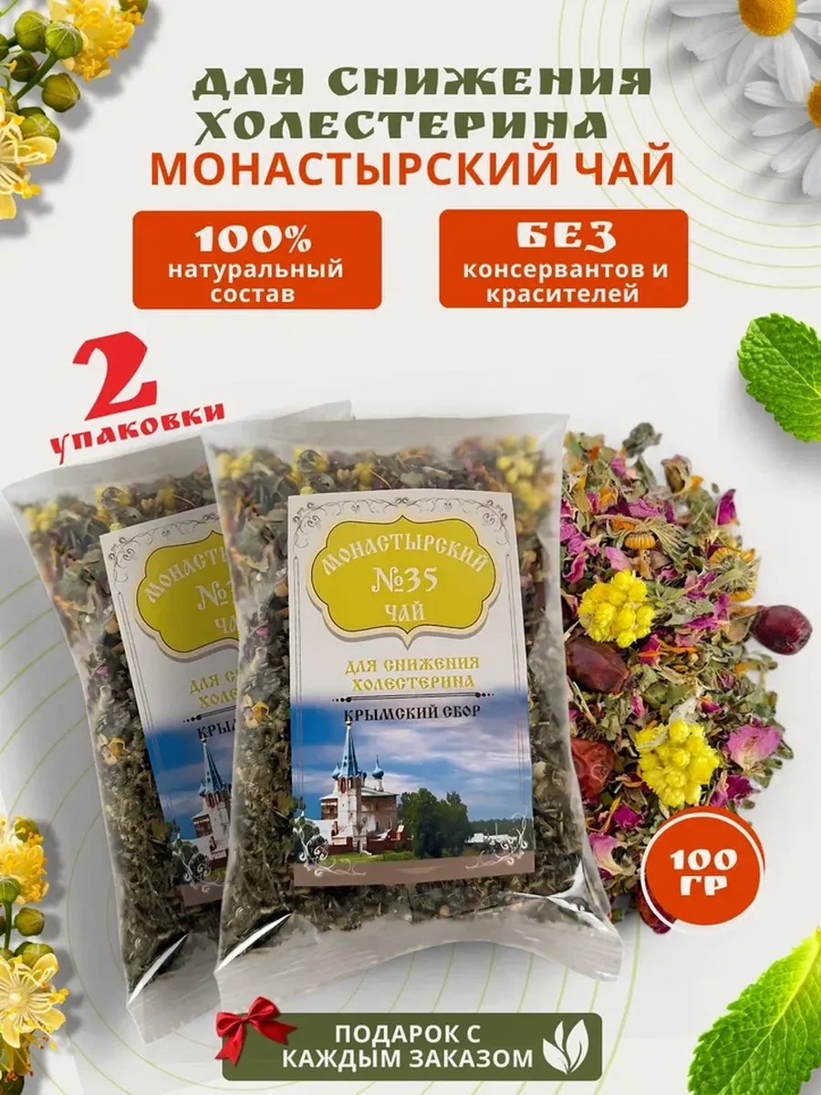 Травяной чай Монастырский сбор №35 - это травы для снижения уровня холестерина в крови.