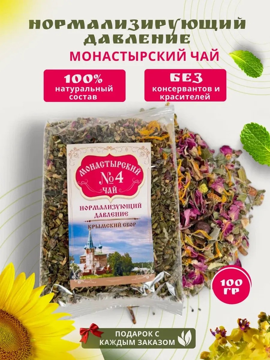 Монастырский травяной чай №4 нормализует артериальное давление низкое давление высокое давление человека и улучшает кровообращение. Напиток может использоваться длительно, тк состоит из натуральных трав. Для всех, кто любит черный чай или зеленый чай, травяной чай может стать полезной и вкусной альтернативой. Крымский сбор применяется в течении мин 4-5 недель. Способ применения: 1 столовая ложка напитка на 1 стакан (кружка, чашка, пиала) кипятка, настоять и пить как чай. Целебные свойства этого ягодного цветочного травяного настоя Вас приятно удивят, а прекрасный вкус даже без сахара и меда, порадует.Здоровая еда суперфуд для мужчин и женщин, ведущих зож, как и ягодный цветочный травяной чай, это залог долголетия и хорошего самочувствия. Крымский сбор вкусный и полезный подарок близкому человеку или себе любимому) Монастырский чай