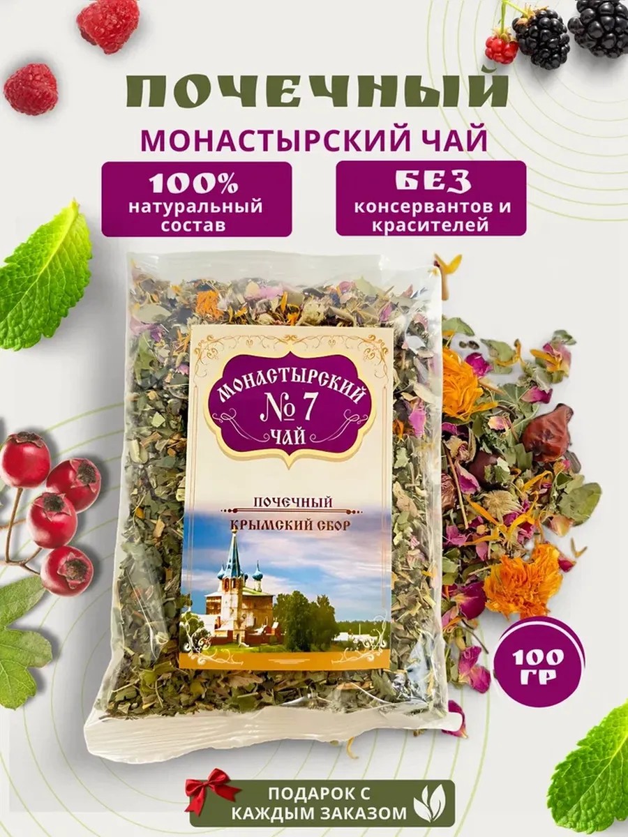 Монастырский травяной сбор №7 почечный. Предупреждает раннее воспаление почек, образование камней, снижает интоксикацию организма. Фиточай следует употреблять не менее 4 недель, т. к. напиток состоит только из натуральных органических ингридиентов. Суперфуд не имеет противопоказаний, кроме личной аллергии на один из компонентов.Поэтому детям, беременным и кормящим стоит проконсультироваться с врачем прежде, чем употреблять печеночный сбор. СПОСОБ ПРИМЕНЕНИЯ: 1 столовая ложка травяного чая на 1 стакан кипятка, настоять и пить как чай. Продолжительность приема 2-3 стакана в день за 15-30 мин до еды, 3-4 недели, при желании можно сделать перерыв 1 неделю и продолжить.Здоровая еда суперфуд для мужчин и женщин, ведущих зож, как и ягодный цветочный травяной чай, это залог долголетия и хорошего самочувствия. Крымский сбор вкусный и полезный подарок близкому человеку или себе любимому) Профилактика здоровья важнее лечения и проще. Пусть Ваши почки работают, как часики! Будьте здоровы.