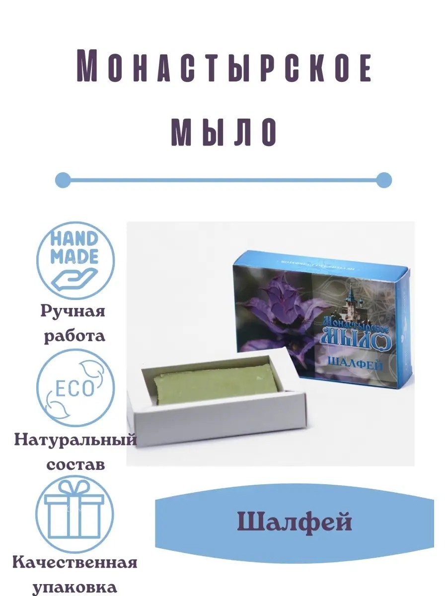 Мыло банное кусковое, обогащенное шалфеем, представляет собой превосходное средство ухода для вашей кожи. Это мыло натуральное прекрасно подходит для ежедневного применения и станет достойным дополнением в вашу коллекцию умывальных средств. Натуральный состав обеспечивает бережный уход за кожей любой категории, будь то жирная, комбинированная или нормальная кожа. Уникальное свойство этого продукта заключается в его способности ухаживать даже за сухой и атопичной кожей. Обладая успокаивающим эффектом, оно снимает зуд и стянутость кожи, предотвращает образование трещин.Монастырское мыло является частью традиционной монастырской косметики для лица и тела. Деликатная структура пенки эффективно очищает кожу от загрязнений и при этом не вызывает ощущения сухости или дискомфорта. Для тех, кто страдает воспалениями кожи тела, это мыло кусковое натуральное станет необходимым компонентом повседневного ритуала по уходу за собой.Этот продукт будет прекрасным выбором на Новый год в качестве оригинального подарка для близких и друзей. Он несет в себе заботу о здоровье и красоте ваших любимых. Эстетичность упаковки позволяет позиционировать его как стильный элемент праздничной корзины с дарами природы.Применение его способствует улучшению состояния кожи благодаря наличию экологически чистых ингредиентов, которые не вызывают раздражения и подходят для любого типа дермы. Мягкость после использования будет заметна с первого применения - кожа становится свежей и ухоженной.Такое особое внимание при изготовлении этого средства определяет высокое качество продукции монастырской косметики для лица. Она предназначена для оздоровления всех участков кожного покрова: тело становится гладким и упругим, а руки получают достойную мягкость.Монастырская линейка продукции всегда обращает внимание на потребности каждого человека – их труд направлен на создание эффективных и безопасных средств без агрессивных химических соединений.