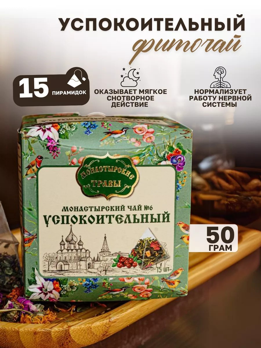 Успокаивающий чай Монастырский №6 - это уникальное успокоительное от стресса, тревоги и бессонницы. Сбор трав содержит лаванду, таволгу, спорыш и другие натуральные ингредиенты, которые благотворно влияют на нервную систему и помогут вам расслабиться после трудного дня.