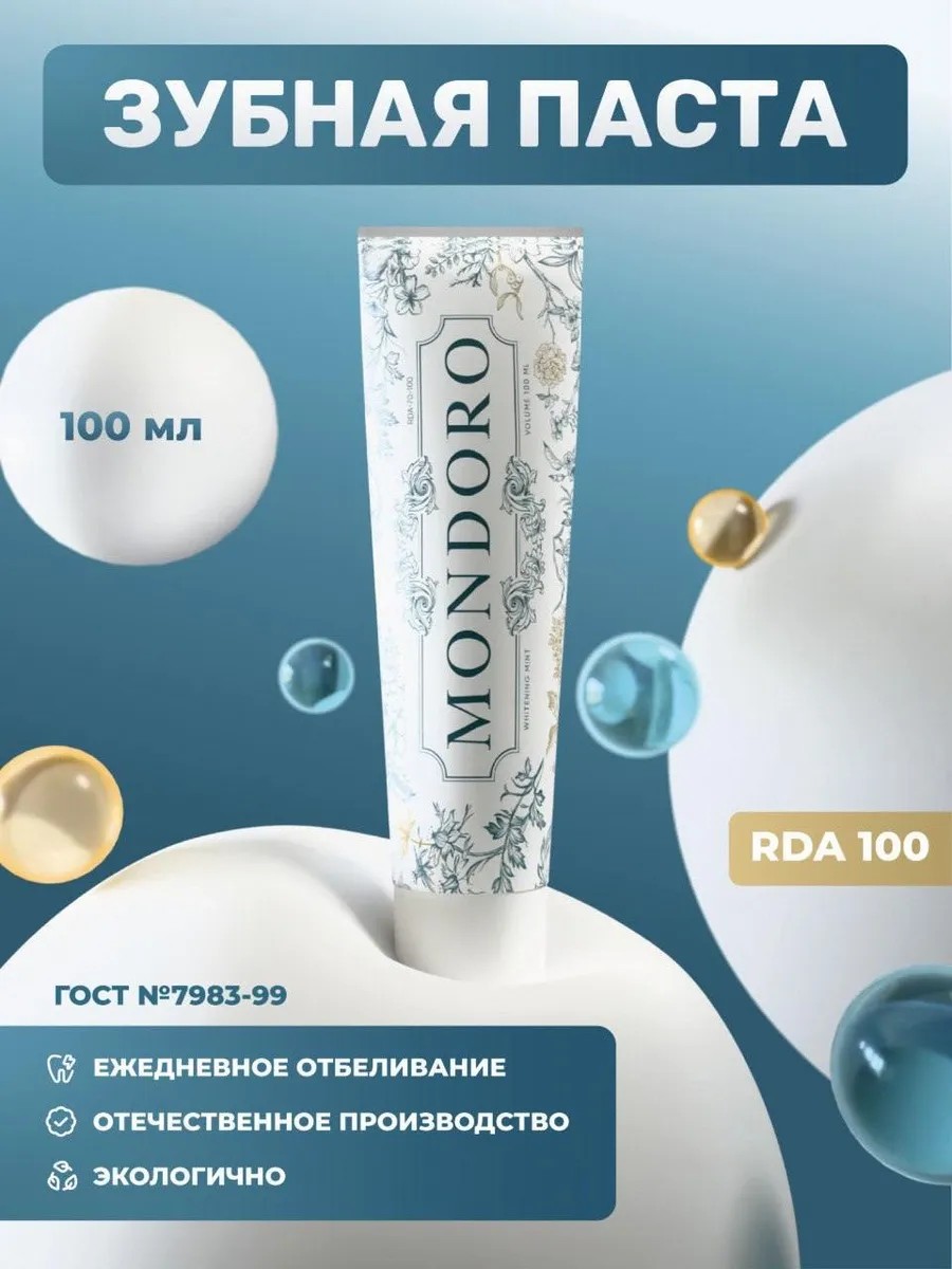 | Полное наименование товара | Отбеливающая зубная паста без фтора Mondoro — натуральный эффект, укрепление и уход, 100 мл |