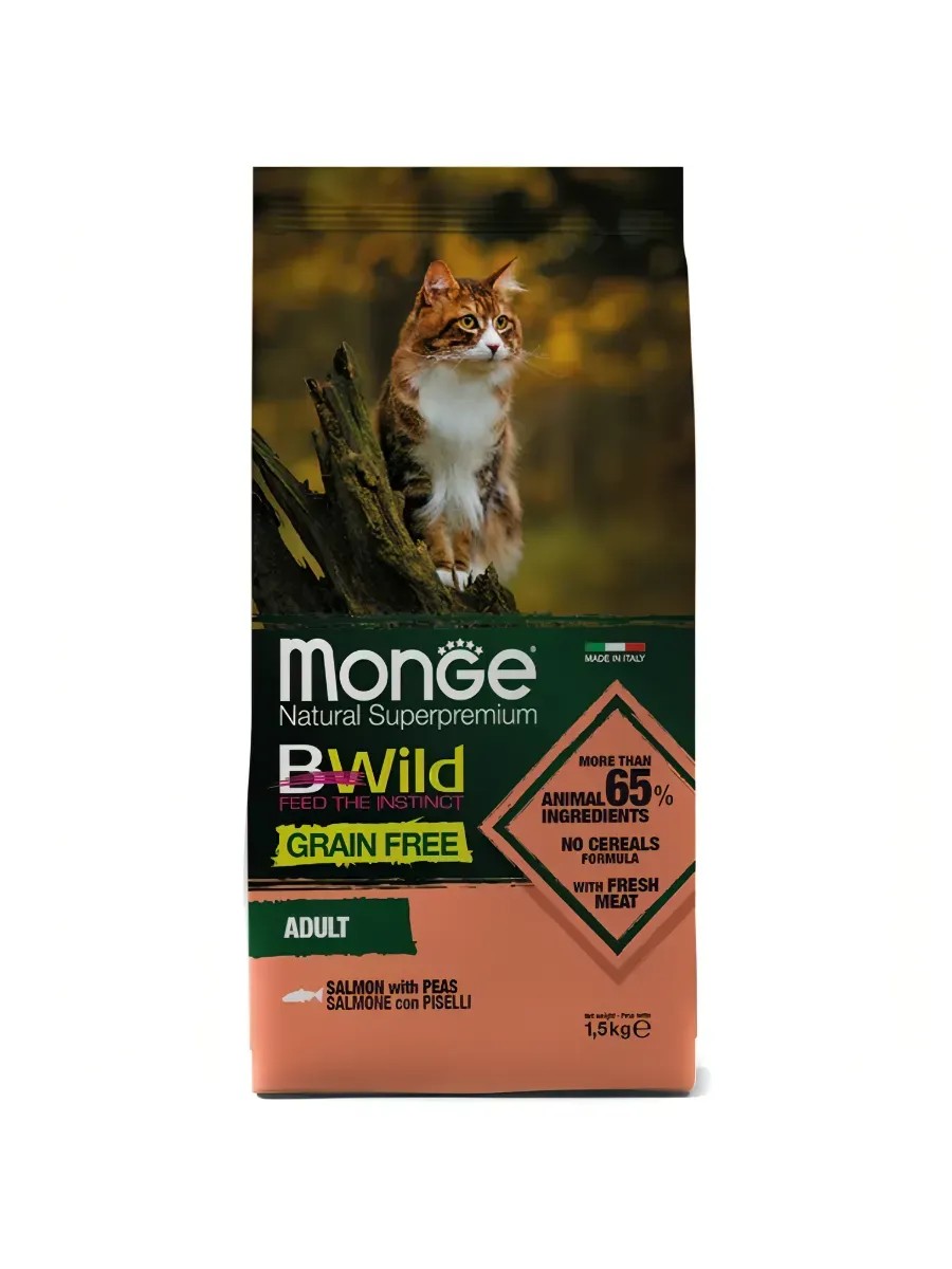 Monge (Монж) Cat BWild GRAIN FREE (холистик) полнорационный беззерновой корм из лосося и гороха для взрослых кошек и котов 1,5 кг.
