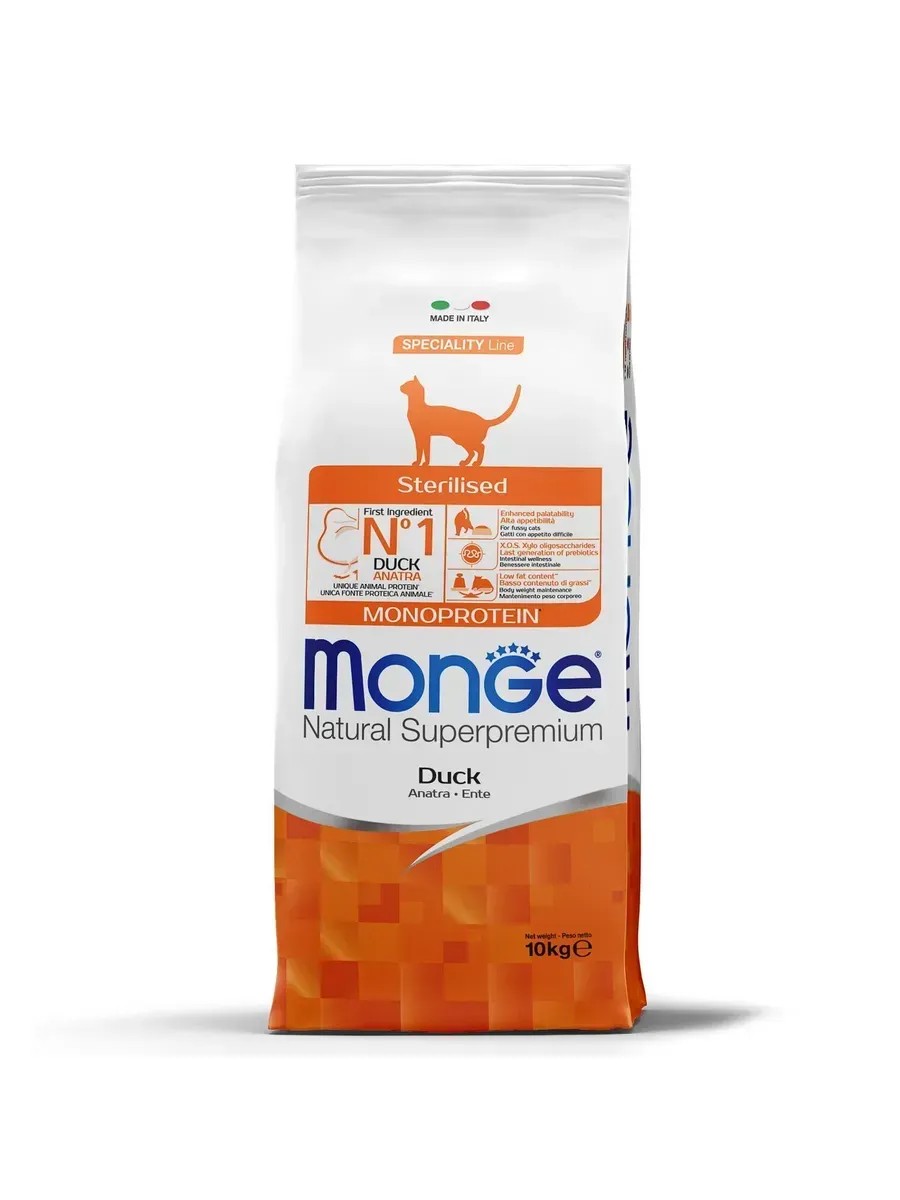MONGE Сухой корм для кошек Sterilised с уткой 10 кг