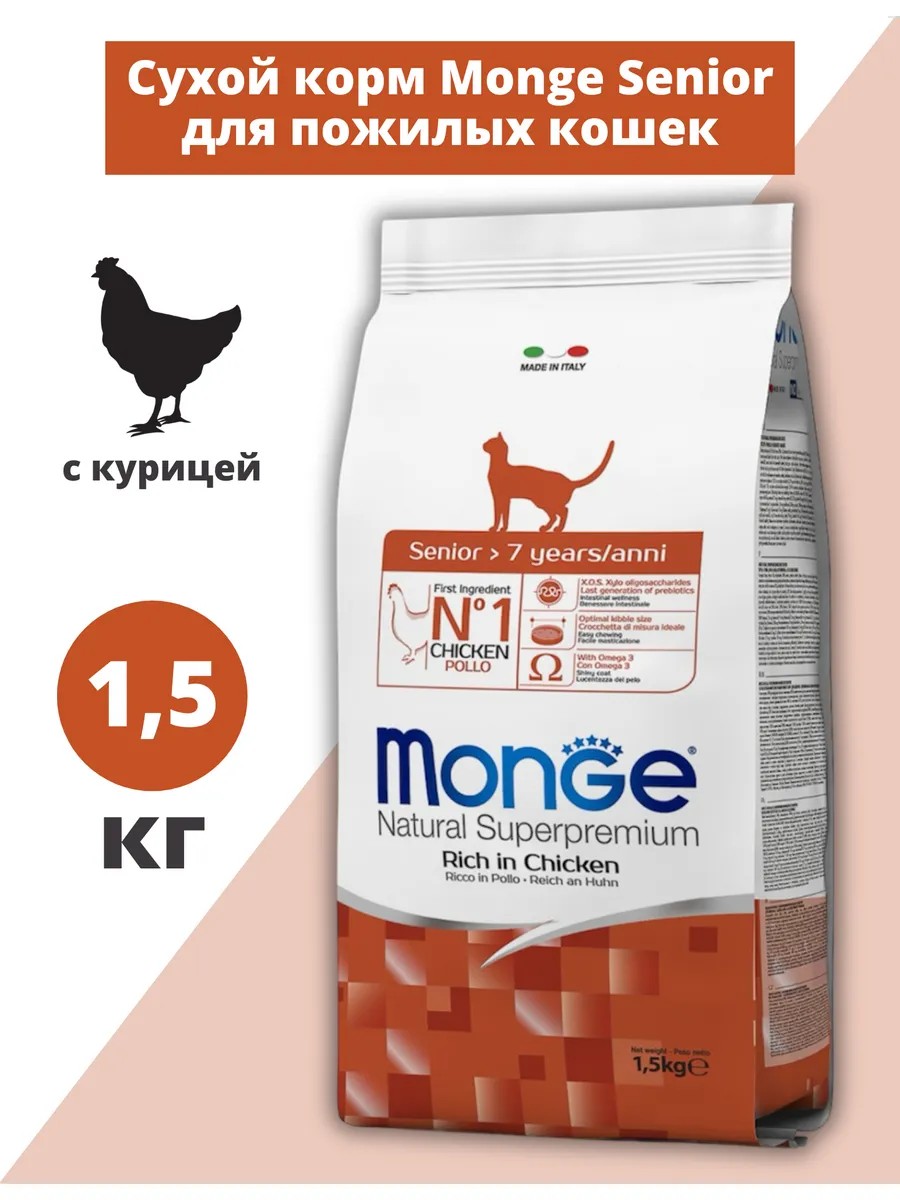 Monge Сухой корм для пожилых кошек с курицей 1,5 кг
