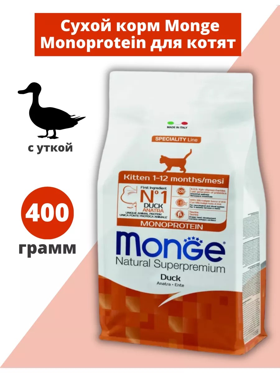 Monge Сухой корм для котят Monoprotein с уткой 400 грамм