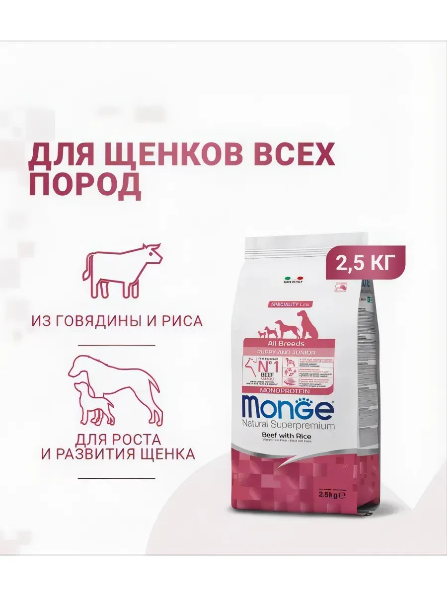 MONGE Сухой корм для щенков, говядина и рис 2,5 кг