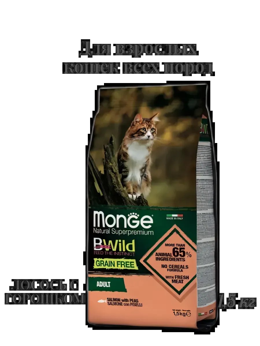 Monge Монж Сухой корм для кошек ,Cat BWild GRAIN FREE лосось 1,5кг