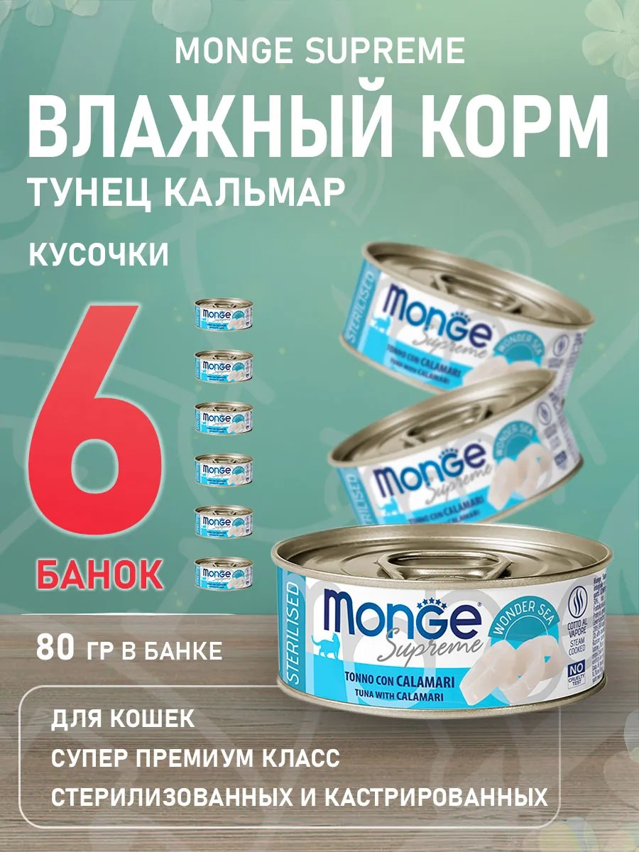 MONGE Корм Supreme стерилизованных кошек тунец кальмар 80 г 6 шт