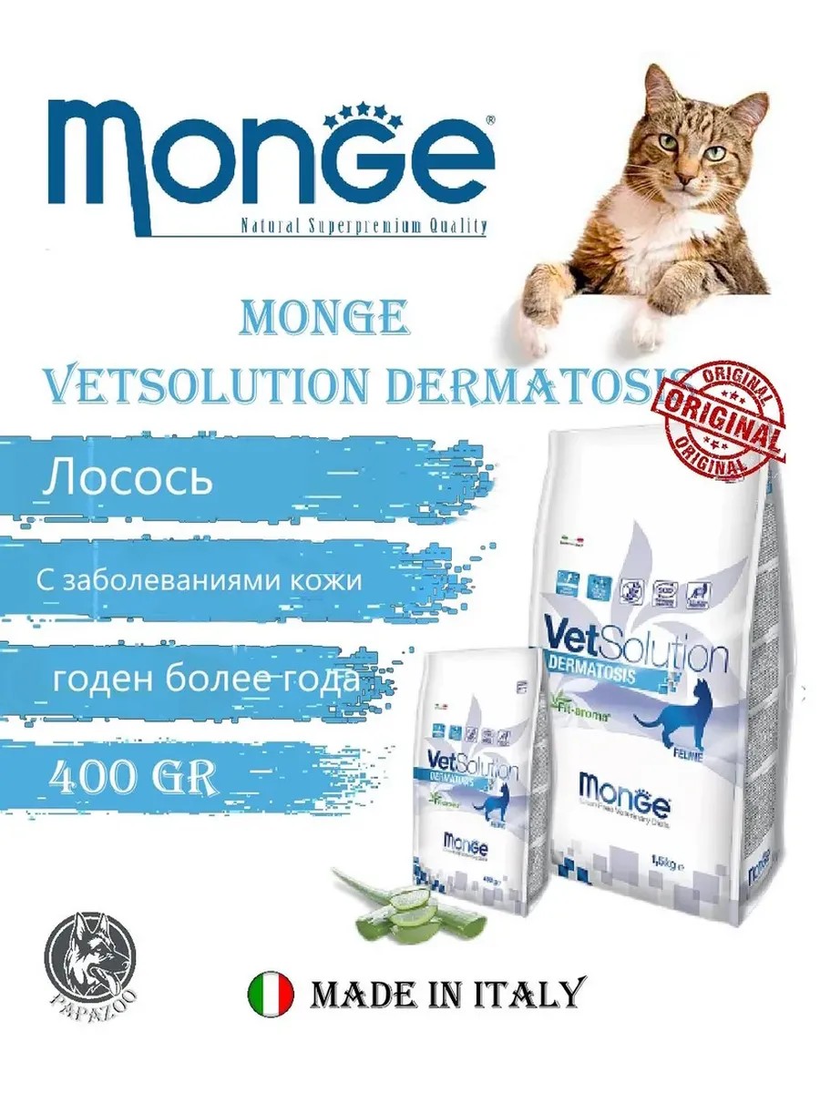 В случае хронического заболевания корм MONGE VETSOLUTION CAT DERMATOSIS можно использовать в течение всей жизни животного.